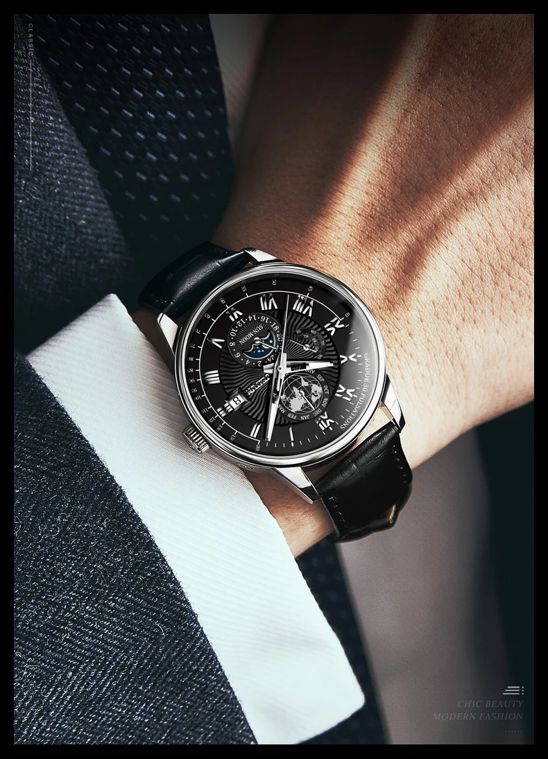 - Elegant Moon Phase Display, adding a unique and refined astronomical complication.