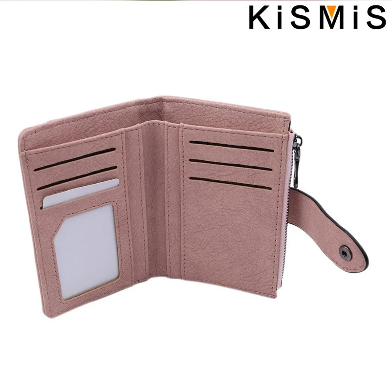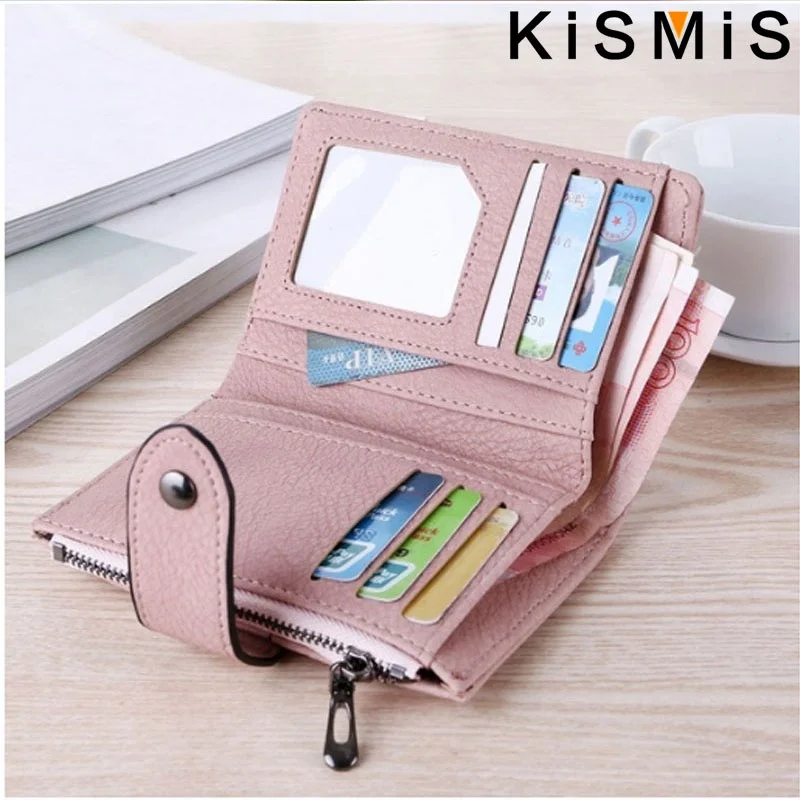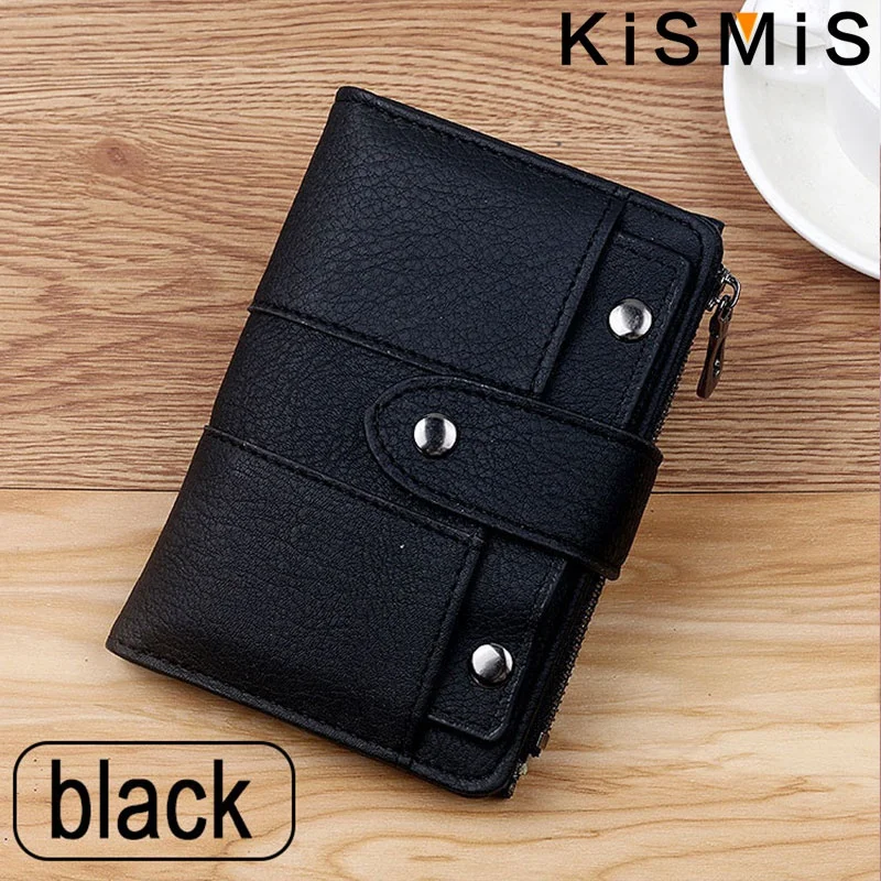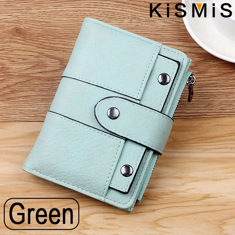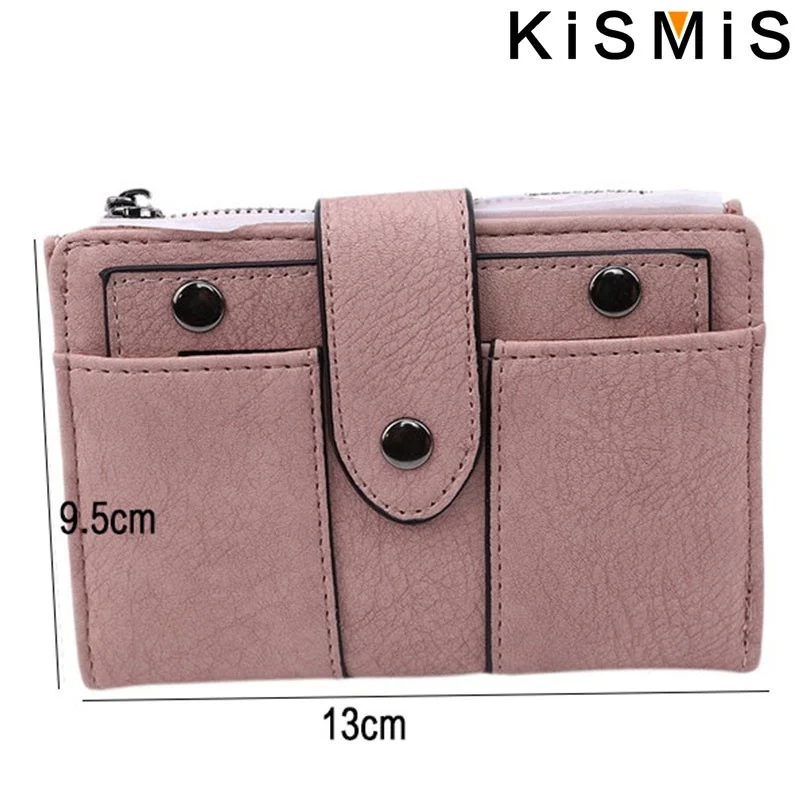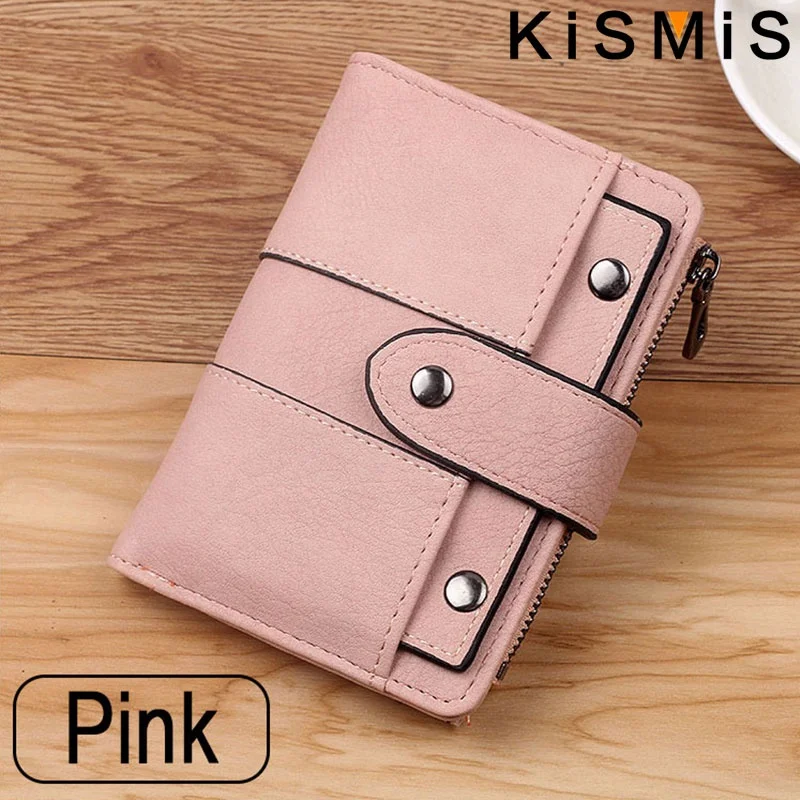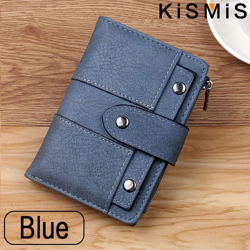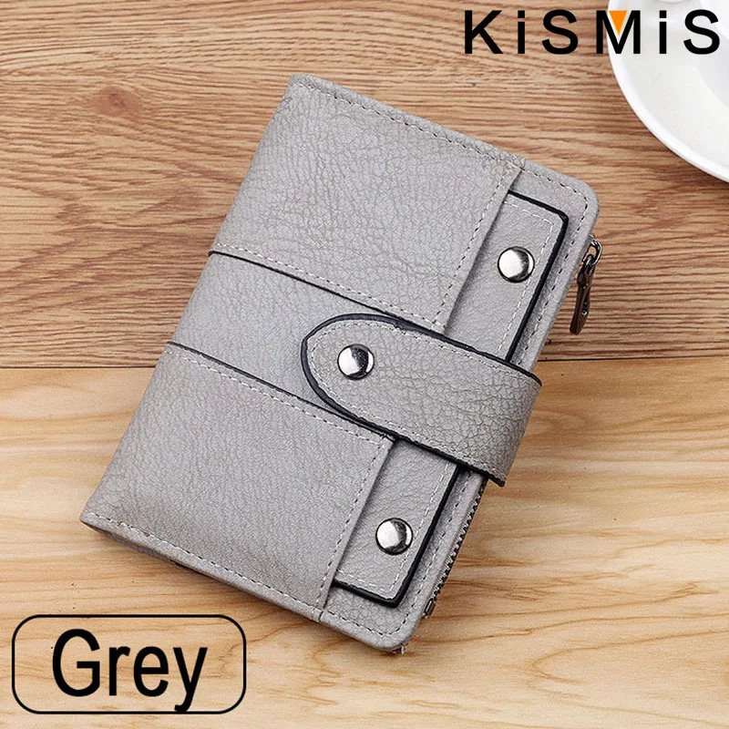 Compact and stylish, the KISMIS PU Leather Rivet Short Wallet features a secure zipper, multiple card slots, and a coin purse. Available in five chic colors, it combines durability with elegance—perfect for organizing your essentials on the go. Elevate your accessory game today.