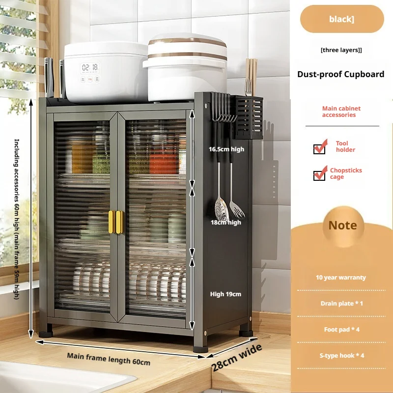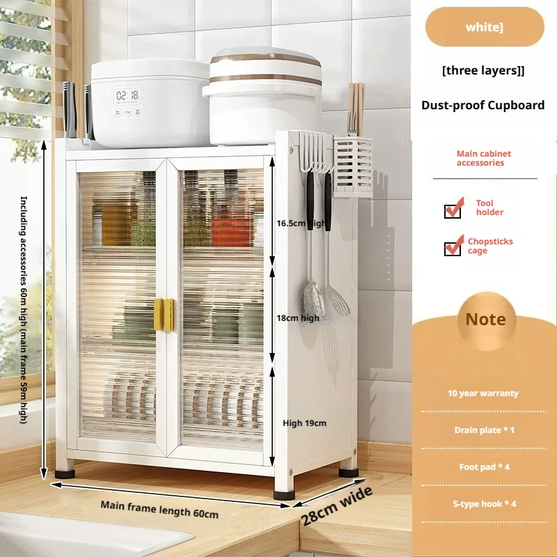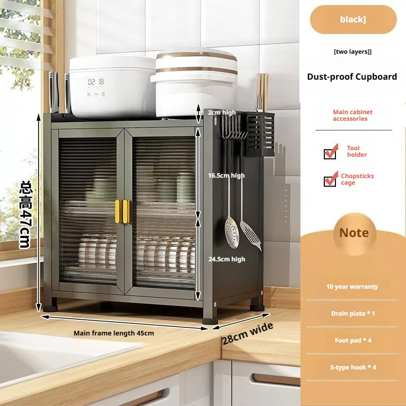 Kitchen Pull-out Knife Chopsticks Organizer Holder Dustproof Dish Rack Countertop Built-in Drain Dish Storage Rack Cabinet Shelf