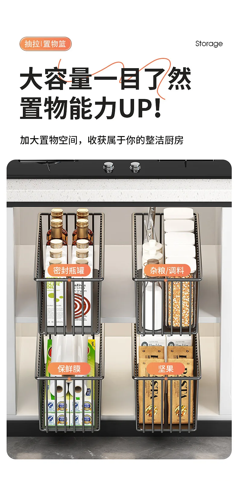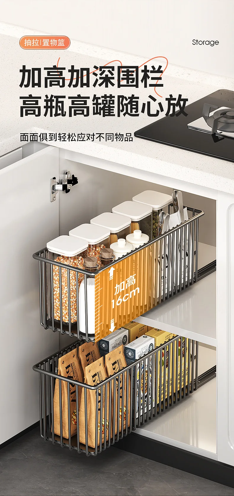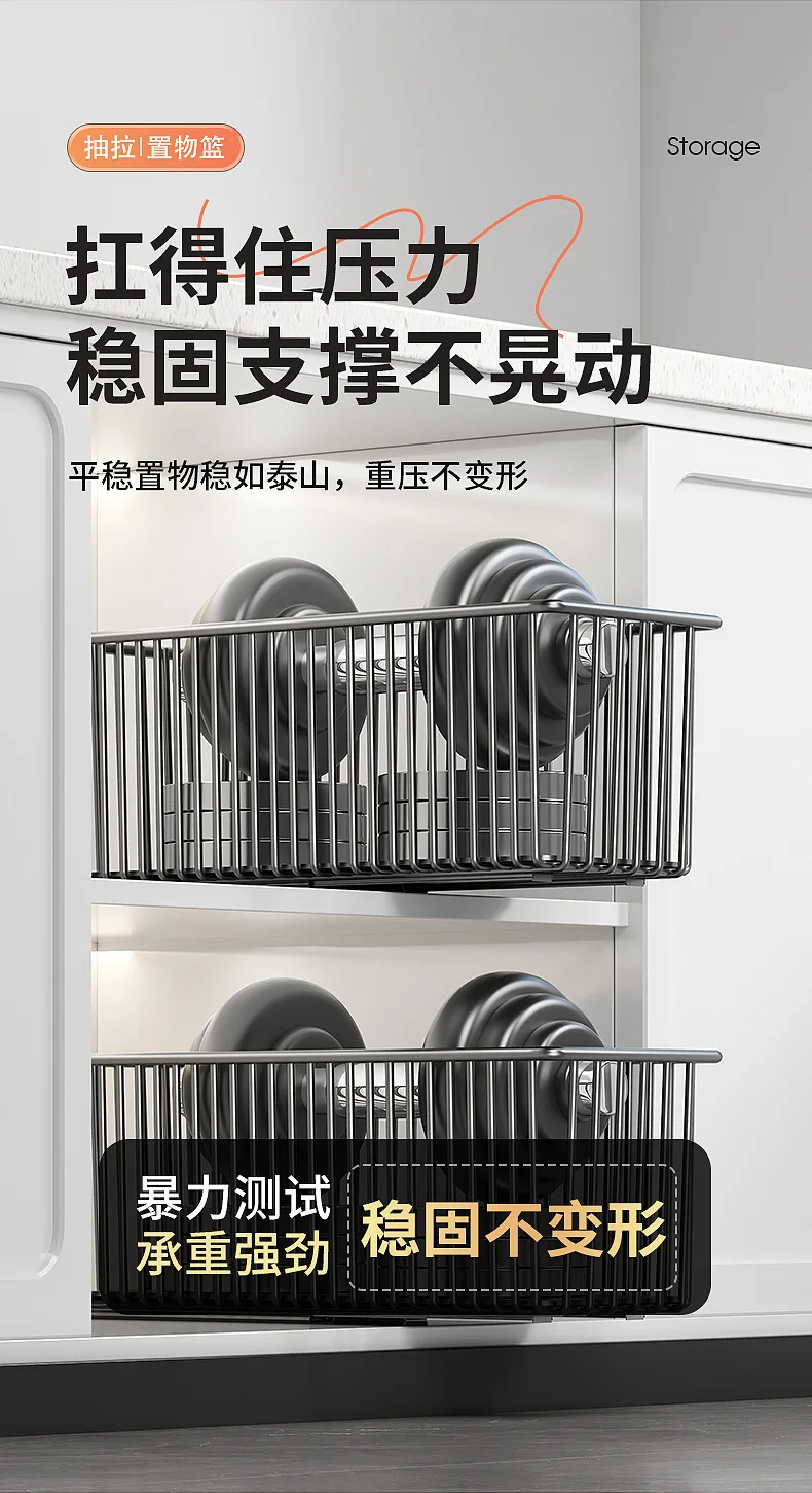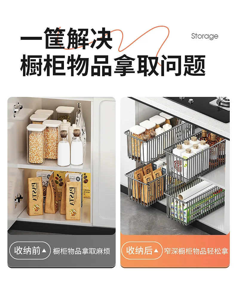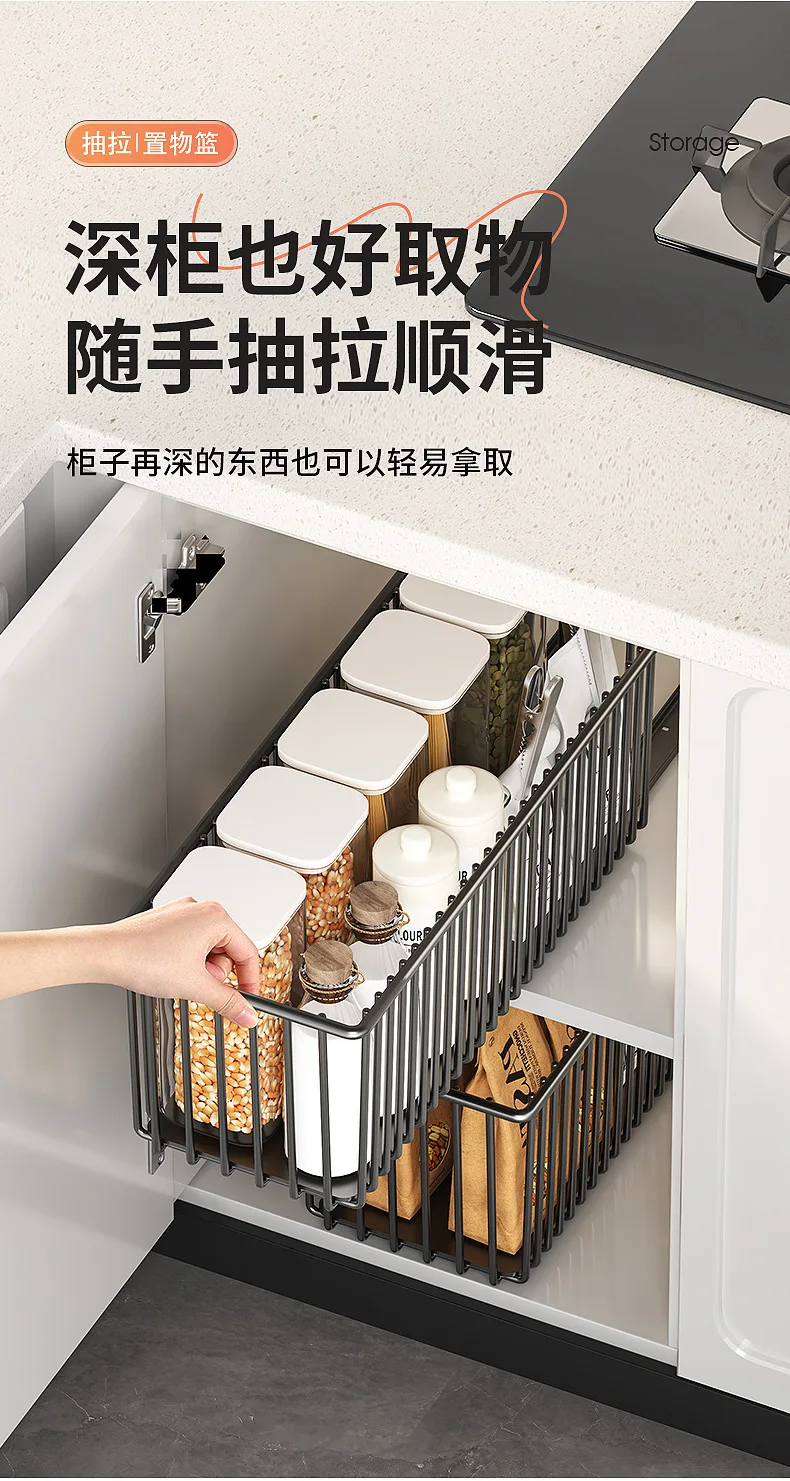 Tired of rummaging through cluttered cabinets and struggling to reach items at the back? Introducing the revolutionary Kitchen Shelf Cabinet Pull-out Basket, designed to bring seamless organization and unparalleled convenience to your kitchen storage. This innovative under-sink and cabinet solution is engineered to maximize your space, streamline your workflow, and elevate your kitchen’s functionality. Say goodbye to wasted space and hello to an effortlessly tidy and efficient culinary environment.