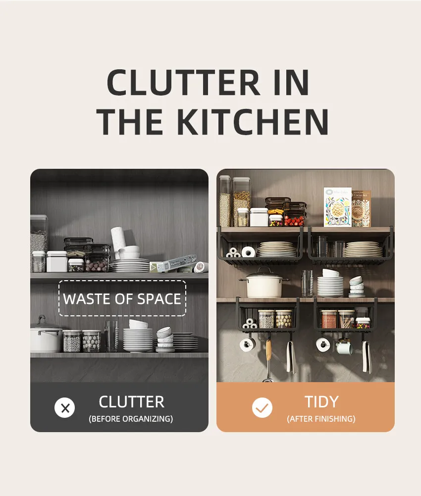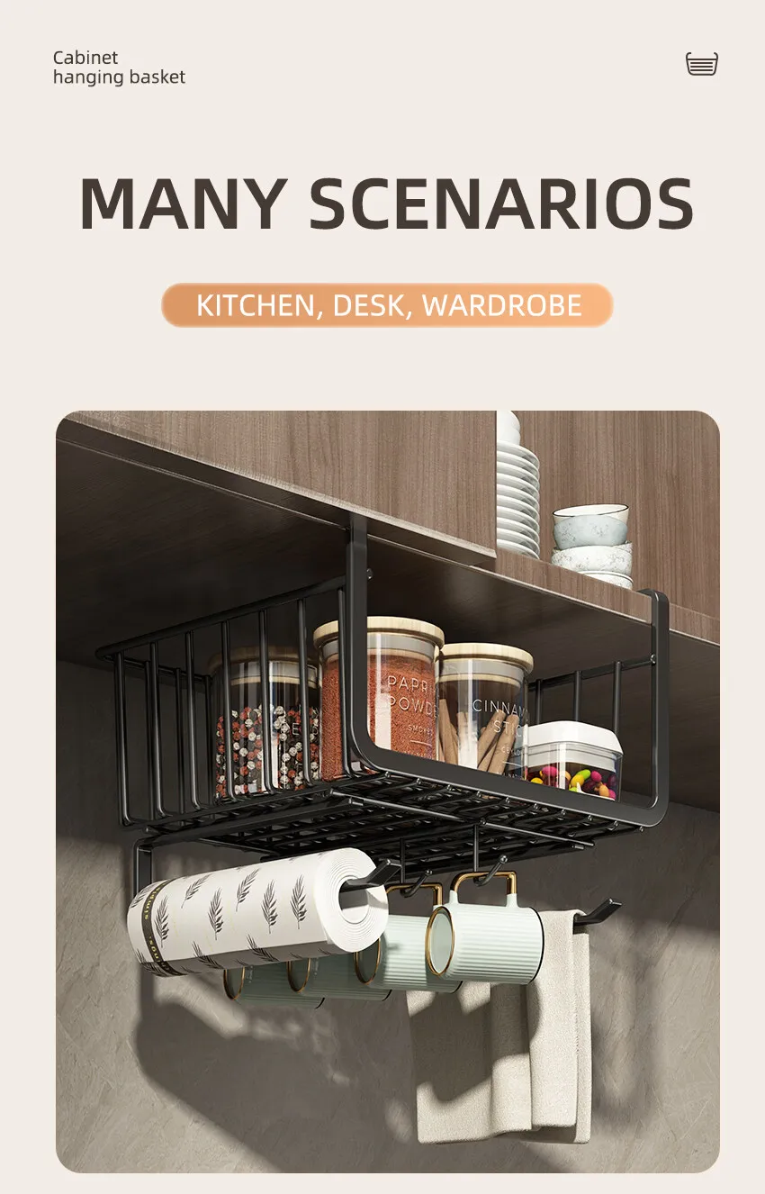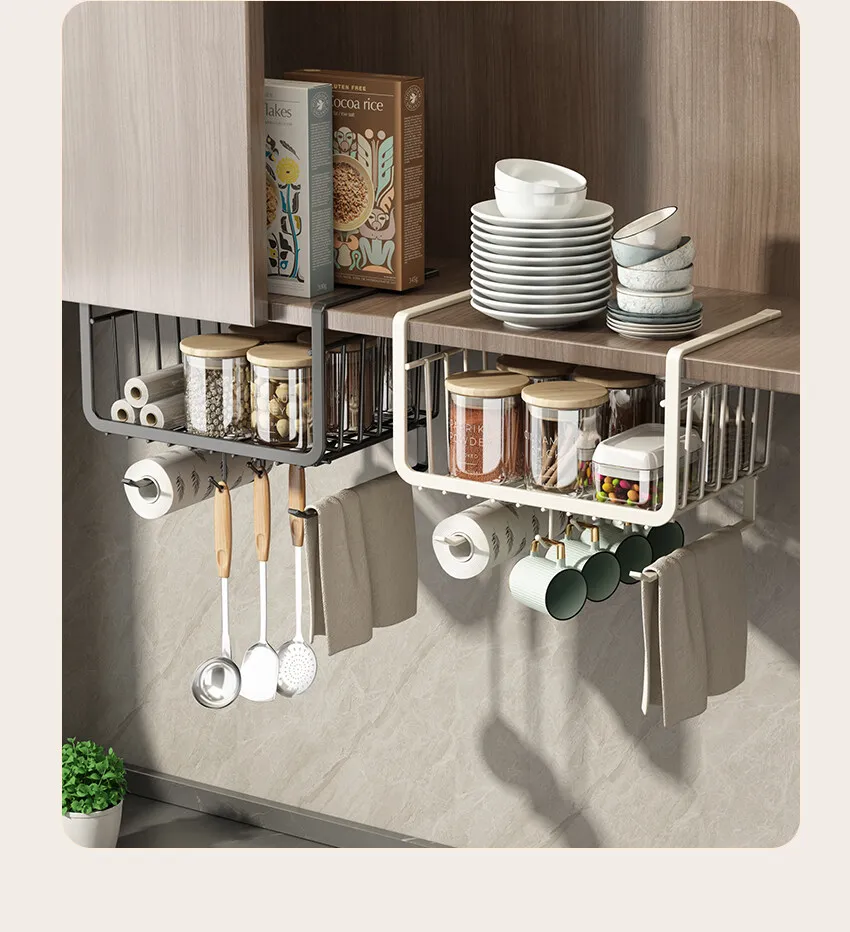 Tired of cluttered countertops and overflowing cabinets? Introducing the ultimate solution for maximizing your kitchen, closet, or desk space. This innovative under-cabinet hanging rack is ingeniously designed to bring order and accessibility to your most-used areas, transforming chaos into calm with its sleek and functional design.