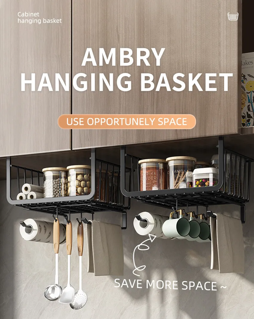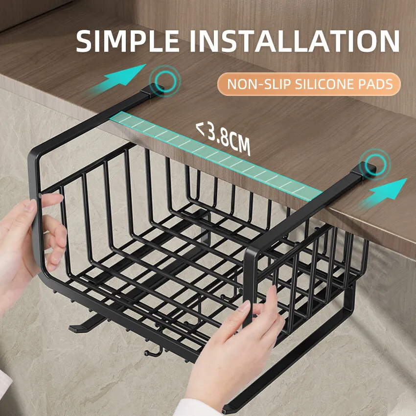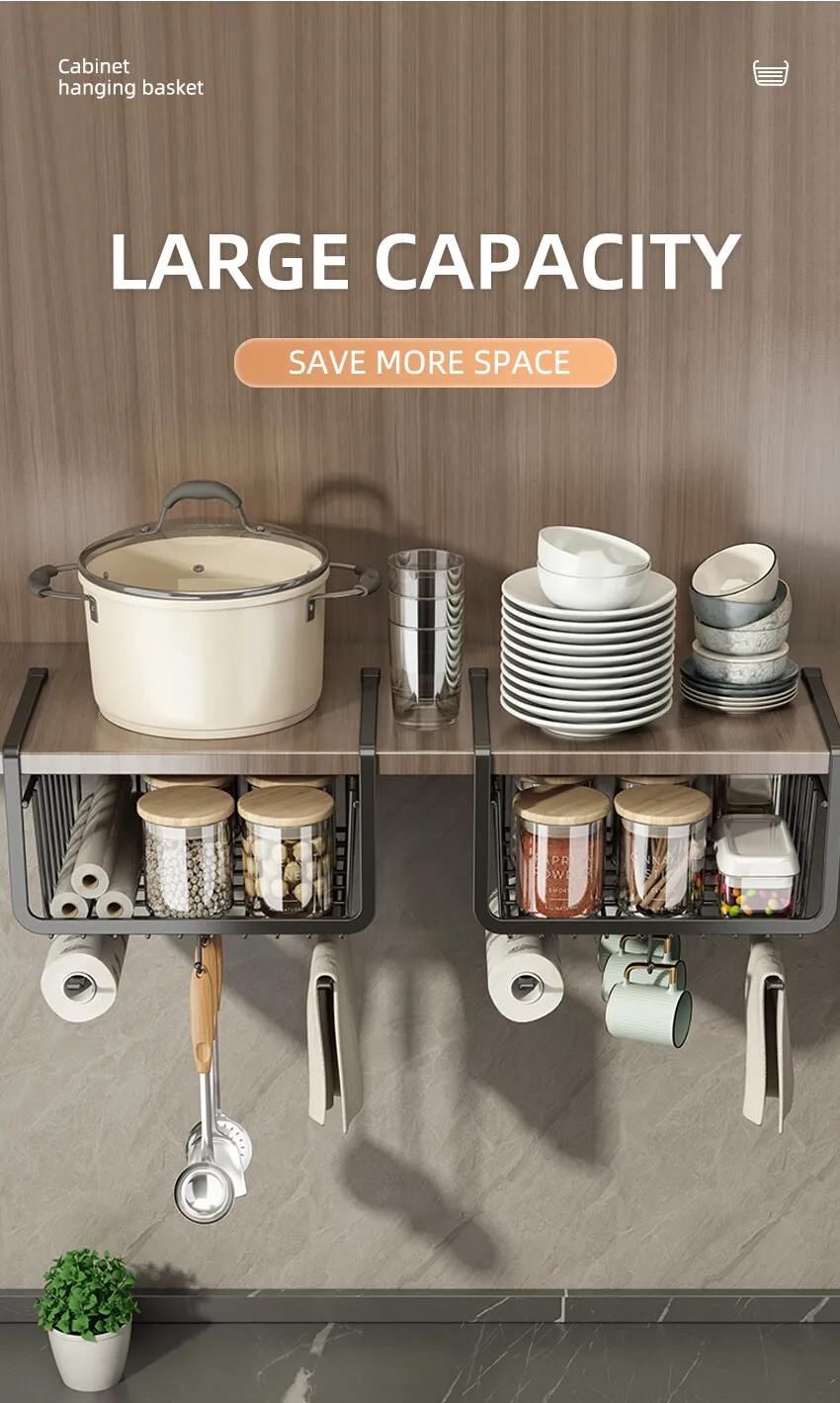 Kitchen Under Cabinet Basket Storage Shelf Tissue Cup Holder Closet Desk Hanging Rack Hollowed Pullout Drawer Sliding Basket