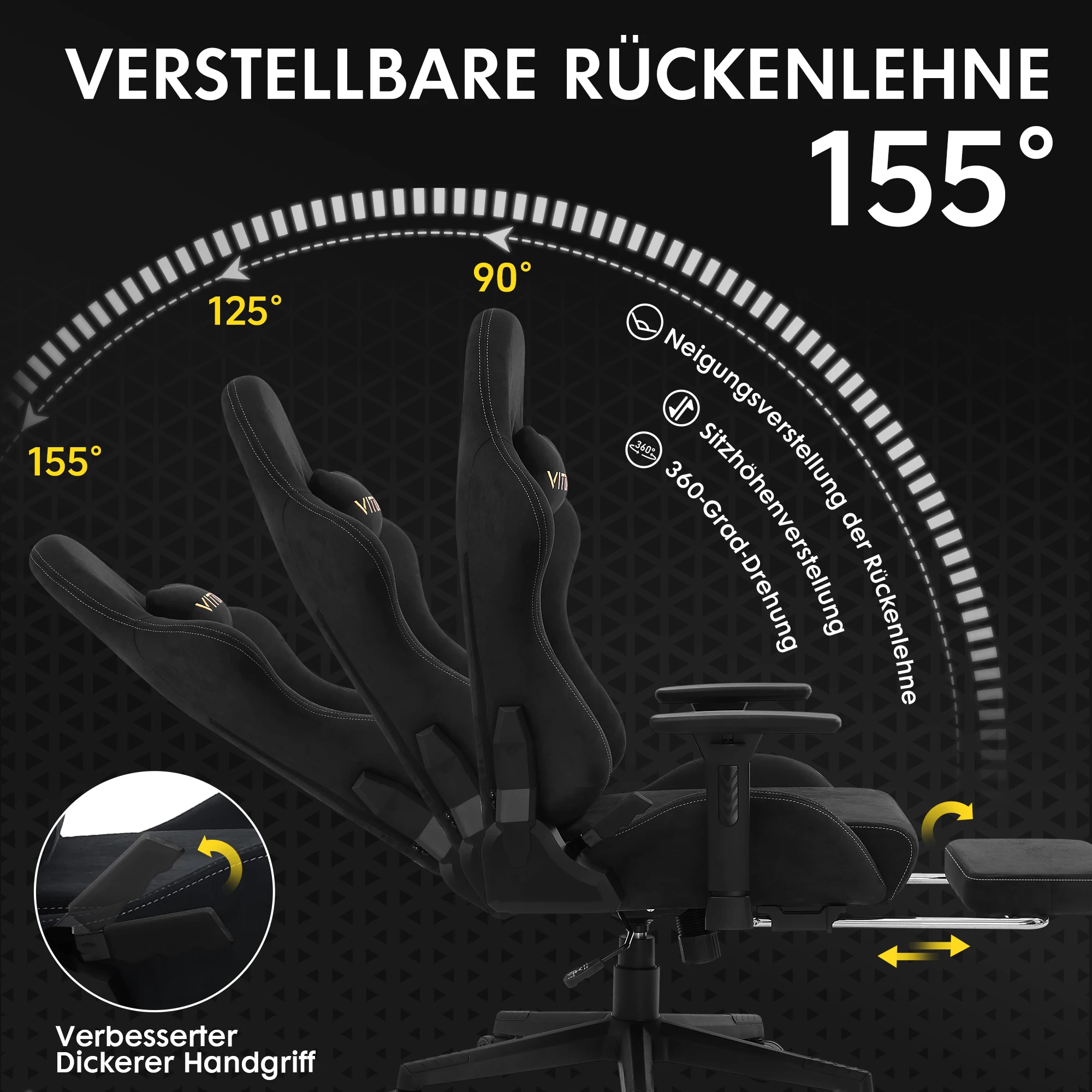 – Adjustable reclining mechanism for customizable comfort angles