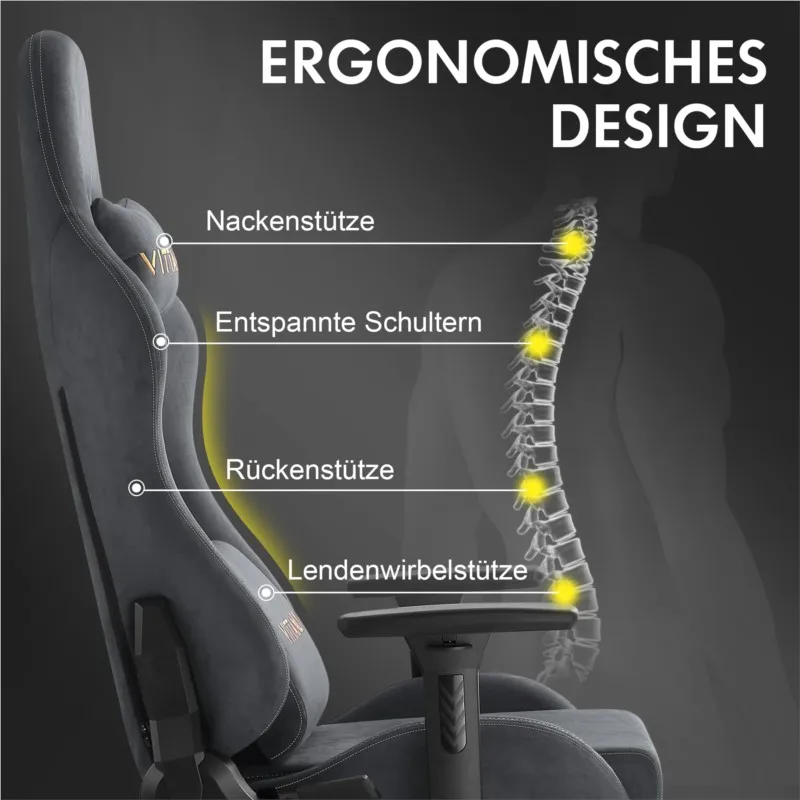 Crafted from natural suede upholstery, this chair offers a soft, breathable surface that is both luxurious and easy to maintain. The materials are chosen for durability and ease of cleaning, requiring only gentle wiping to keep the chair looking pristine. Its robust frame supports long-term use, making it an excellent investment for anyone prioritizing comfort and ergonomic health in their seating choice. Suitable for various settings including gaming rooms, offices, and recreational areas.