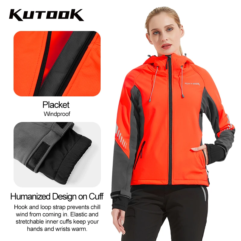 KUTOOK Windproof Thermal Fleece Softshell Jacket with Hood for Women