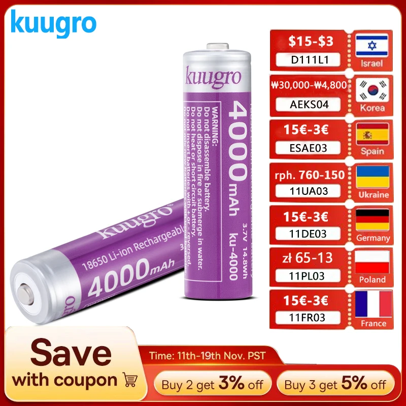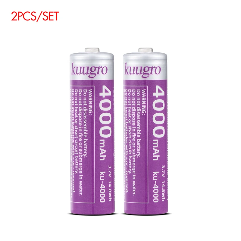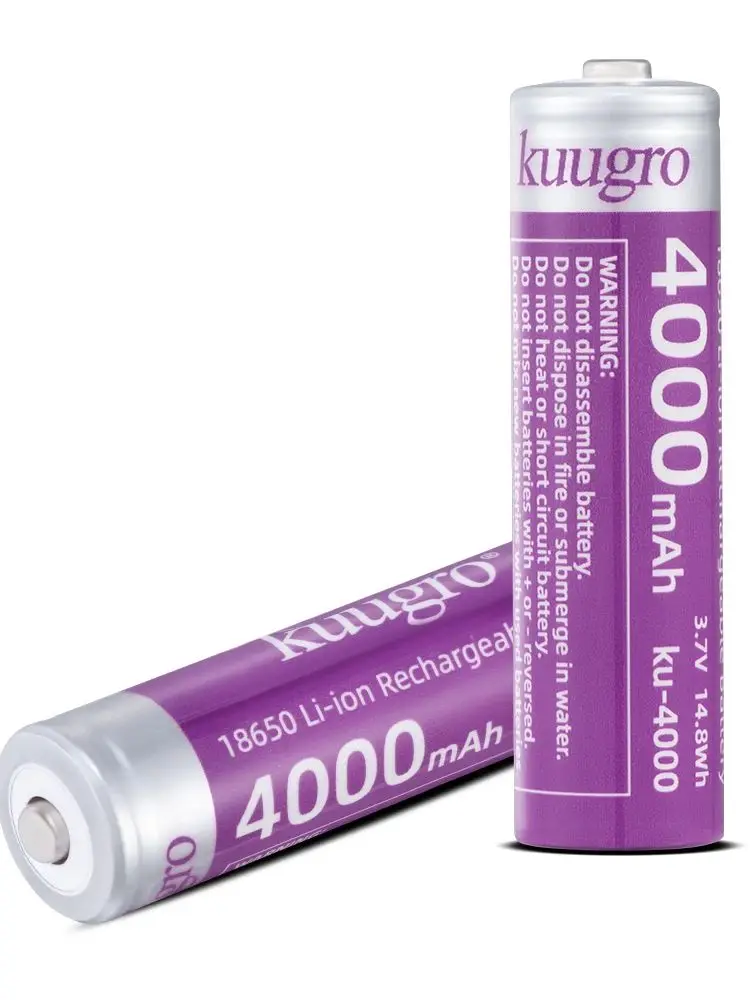 kuugro ku-4000 Pointed Battery 18650 4000mAh 3.7V Highest Capacity Rechargeable Lithium Batteries 12A Discharge for Flashlight