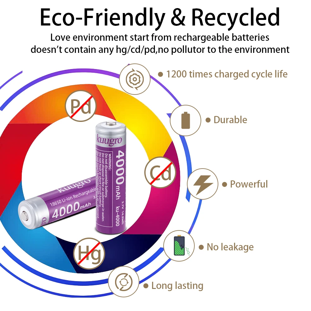 Crafted from high-quality lithium-ion materials, the Kuugro KU-4000 battery requires minimal maintenance. To maximize lifespan, store in a cool, dry place and avoid overcharging. Compatible with most devices designed for 18650 batteries, it offers versatile application across various electronics categories. Choose the pack size that best fits your needs, whether for individual use or bulk supply.