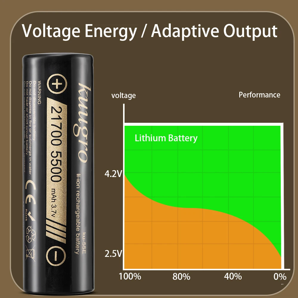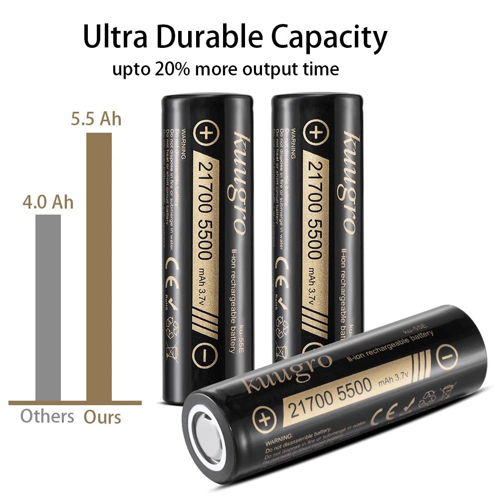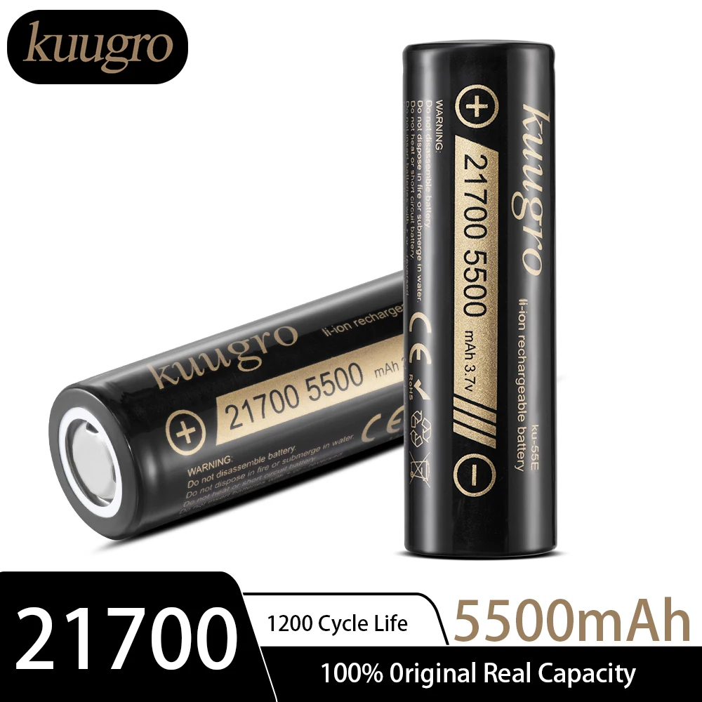 Kuugro ku-55E 21700 5500mAh 3.7V Rechargeable lithium Battery 2C Discharge High Power batteries For High-power Appliances