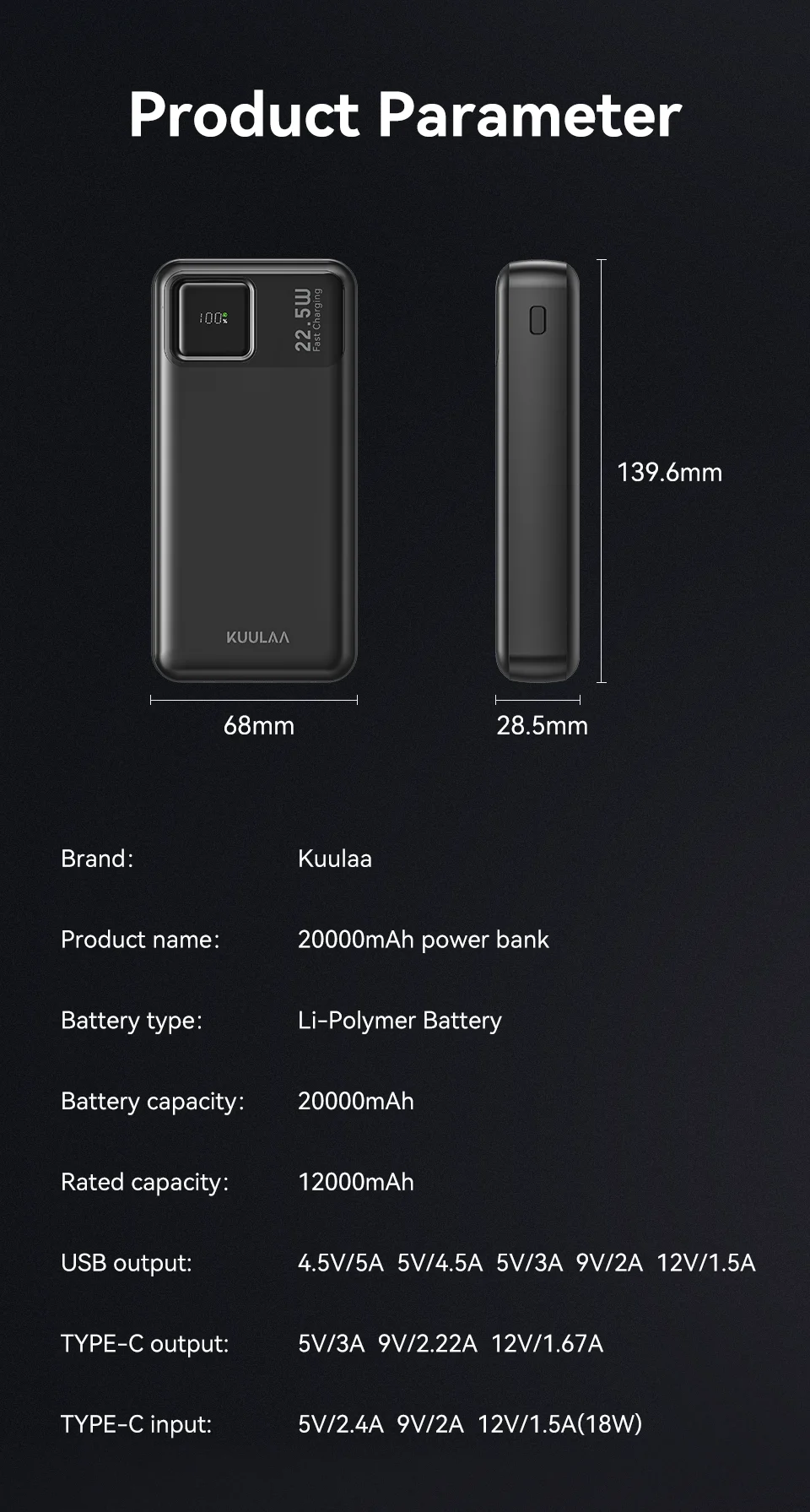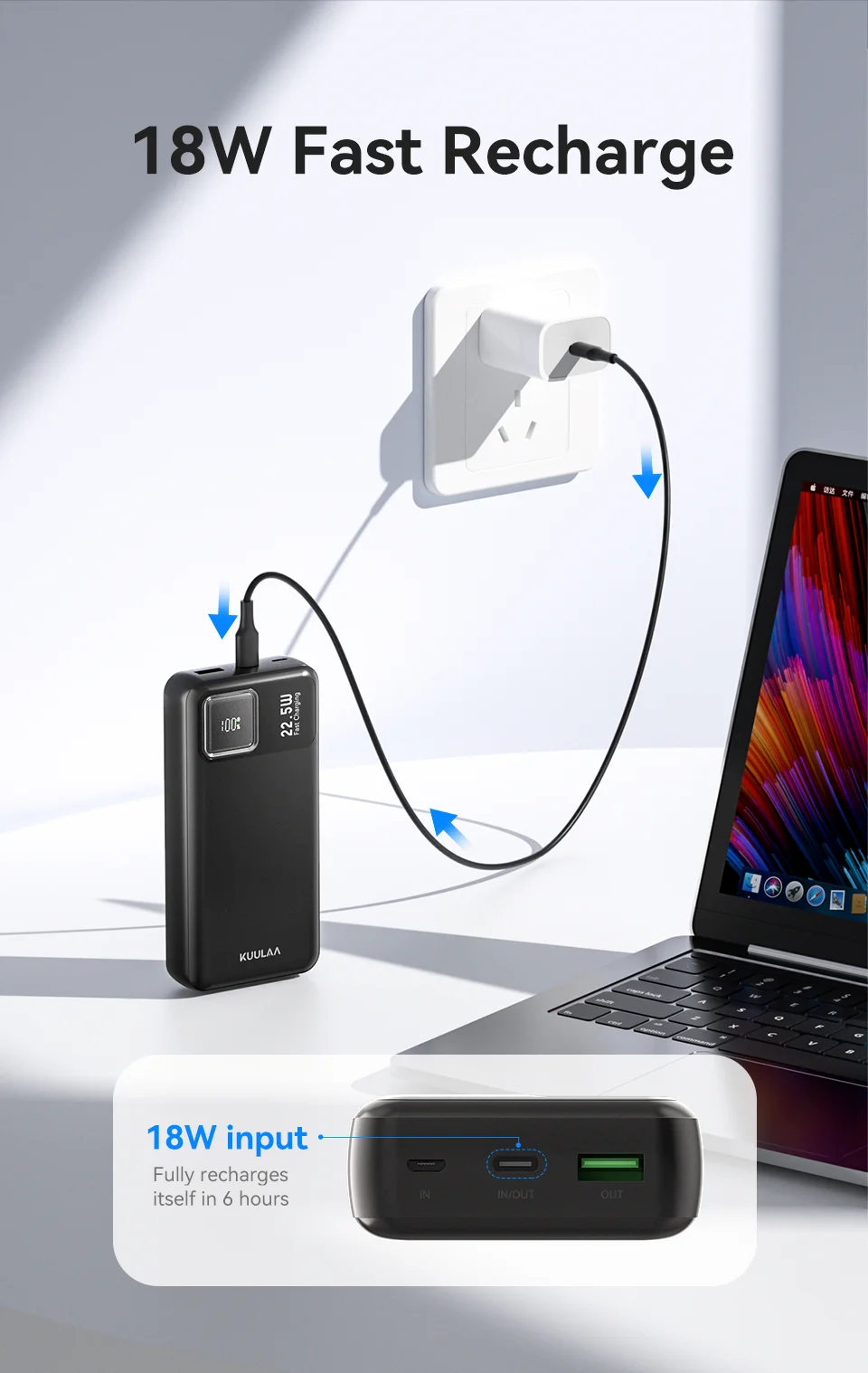 Choose the KUULAA 20000mAh Power Bank for an efficient, stylish, and powerful charging experience wherever life takes you.