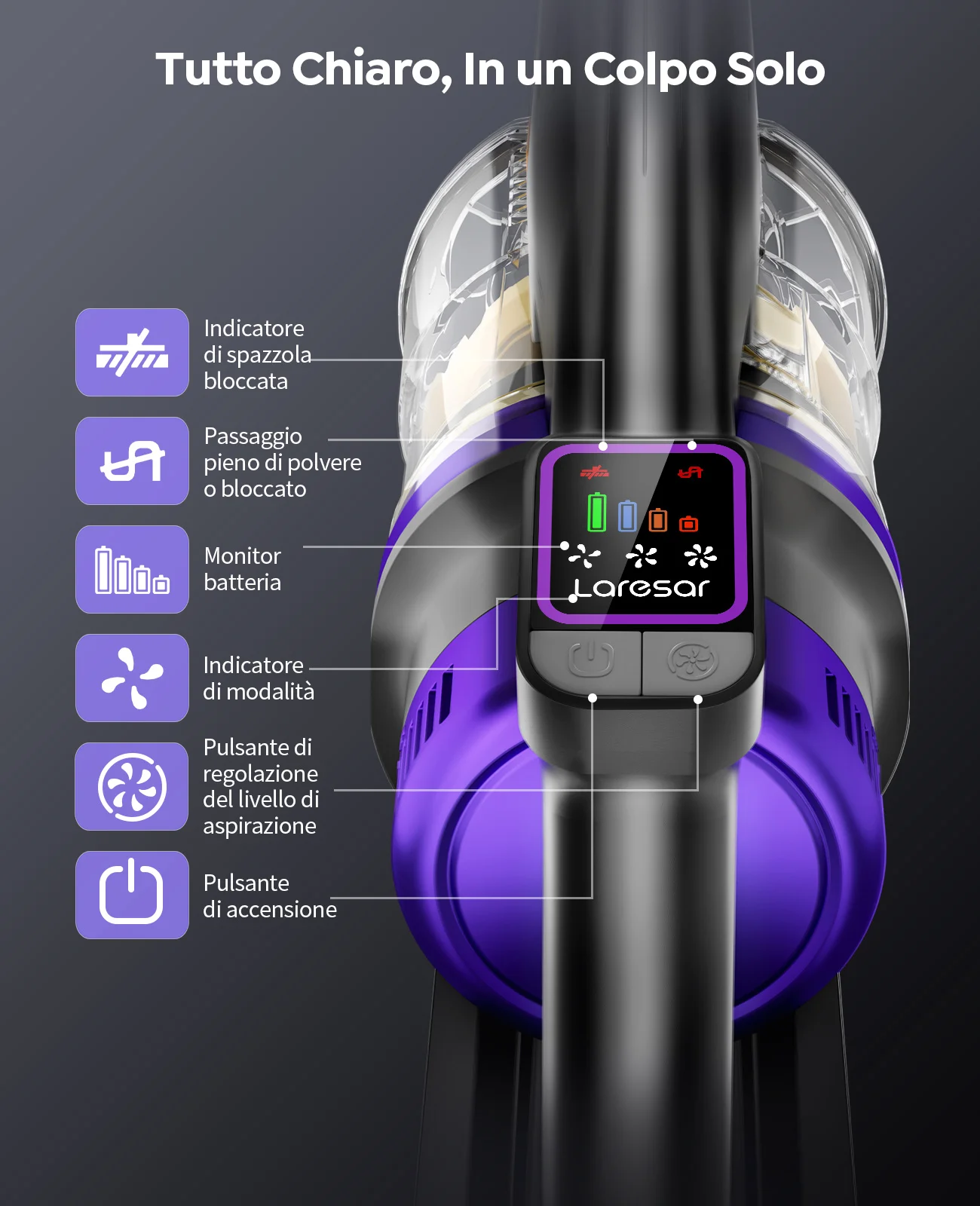 Experience unparalleled cleaning power and effortless convenience with the Laresar X11 Cordless Vacuum Cleaner. Engineered for modern living, this high-performance device transforms your cleaning routine, making it quicker, more efficient, and remarkably satisfying. Say goodbye to tangled cords and hello to a pristine home with this intelligent, powerful, and versatile cleaning solution.