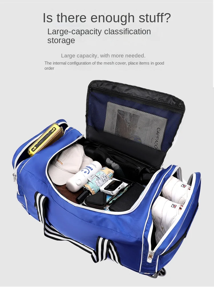 Embark on your next adventure with unparalleled ease and ample storage. This Large Capacity Rolling Luggage Trolley Bag is meticulously designed for travelers who demand both durability and convenience. Say goodbye to the struggles of heavy lifting and disorganized packing, and embrace a seamless travel experience with a bag that truly performs.