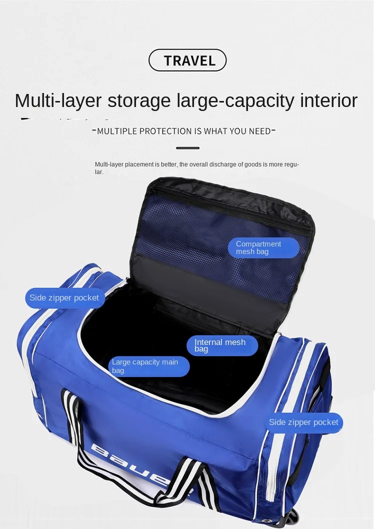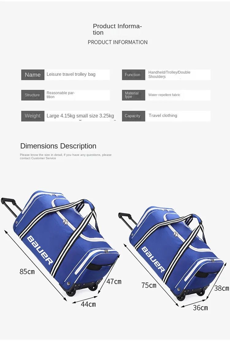 Constructed from high-grade Oxford fabric, this wheeled bag is built to last, featuring reinforced stitching at stress points for enhanced durability. The robust material is not only waterproof but also resistant to tears and abrasions, ensuring your investment stands the test of time and travel. To maintain its pristine condition, simply wipe the exterior with a damp cloth. This bag is engineered not just for travel, but for enduring countless adventures by your side, providing reliable performance trip after trip.