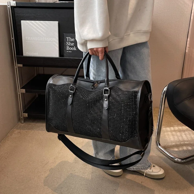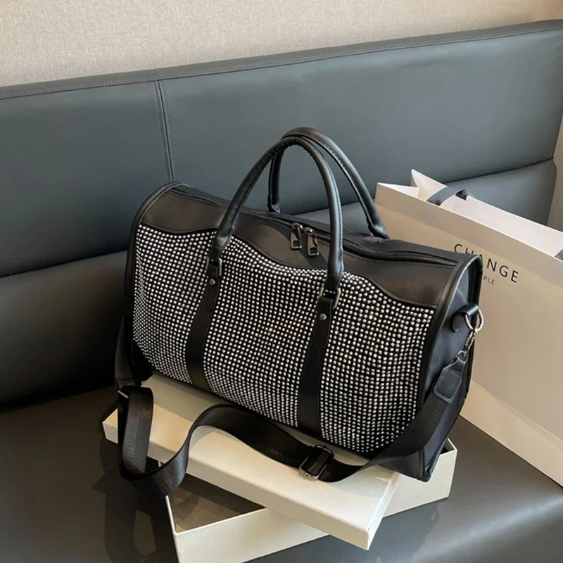 Large Size Luggage Bag Travel Bag Y2 K Aesthetic Rhinestone Tote Bags Women Trend 2024 Luxury Brand Boston Weekend Bag Outdoor