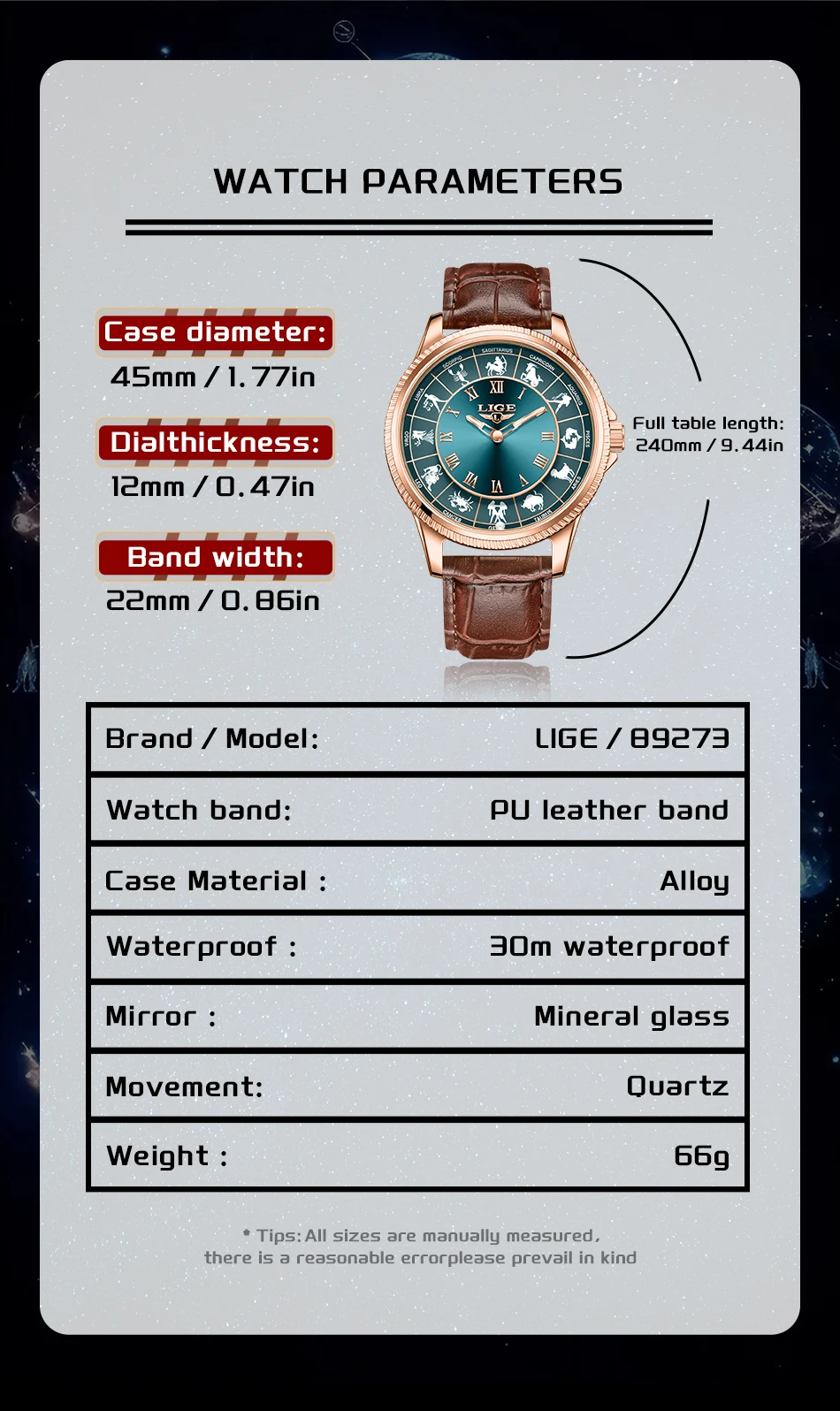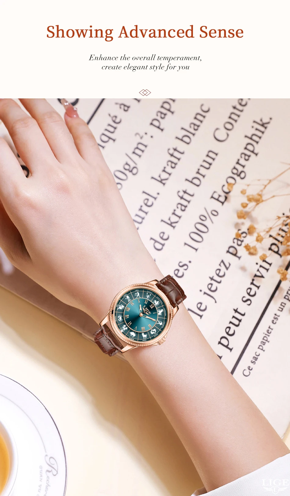 The watch is crafted from high-quality materials to ensure durability and a refined finish. The watch is designed for everyday wear. To maintain its beauty, avoid prolonged exposure to extreme temperatures and chemicals. Clean the watch gently with a soft, dry cloth. The LIGE Retro Elegant Quartz Women’s Watch is a testament to timeless elegance, a perfect blend of fashion and functionality.