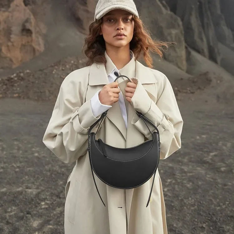 Light luxury high-end ladies’ crescent bag, Boling’en niche design, single shoulder crossbody bag, leather armpit saddle bag