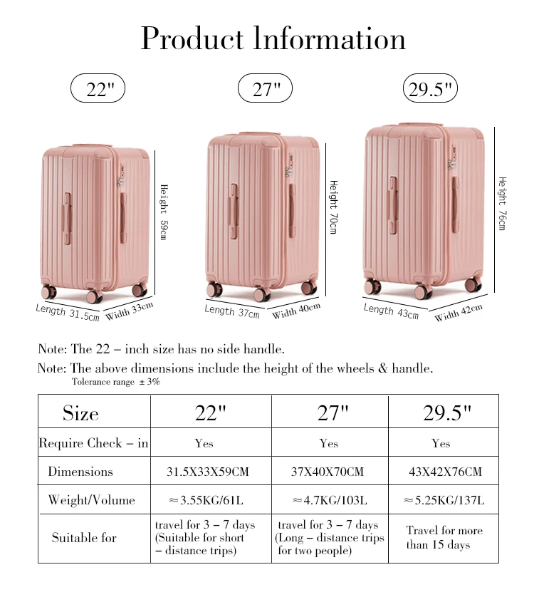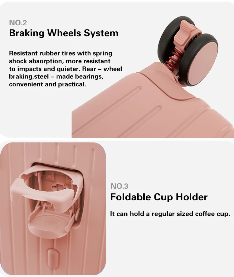 – Smooth Rolling Wheels: Experience effortless 360-degree maneuverability through bustling airports and diverse terrains.