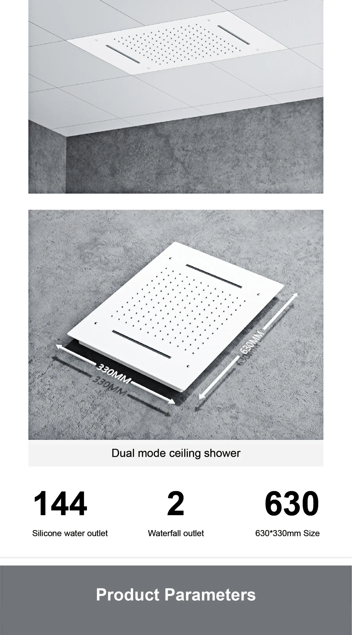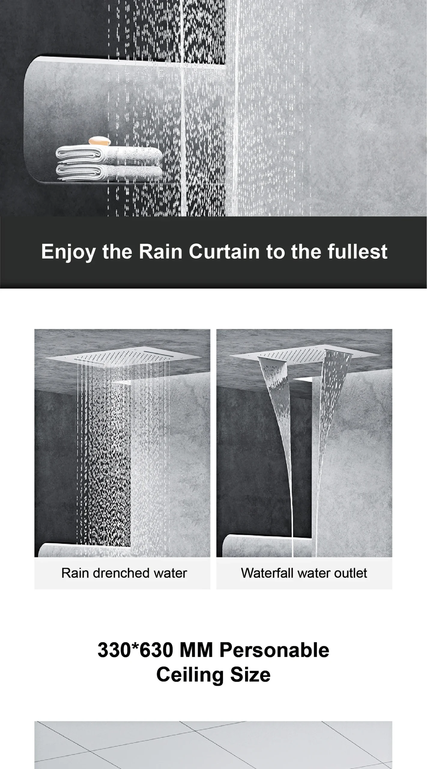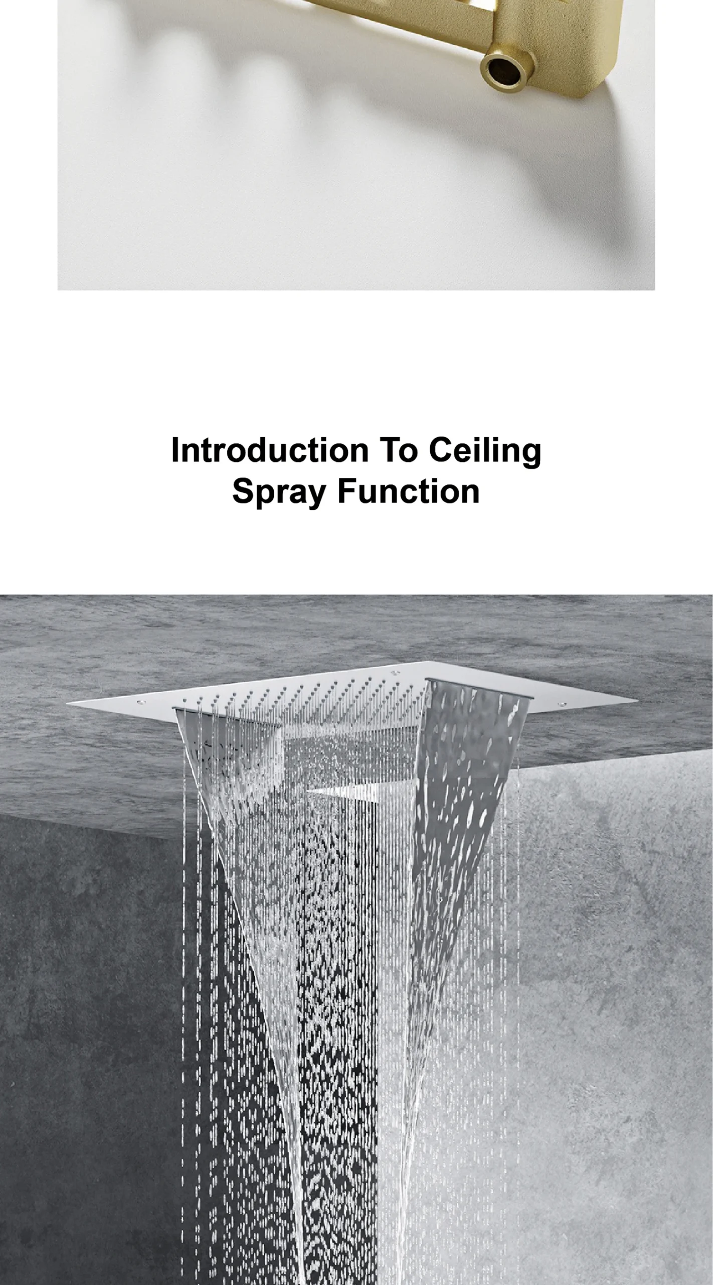 – Ceiling Mounted Design: Frees up wall space and creates a minimalist, spa-like ambiance for a truly immersive shower experience.