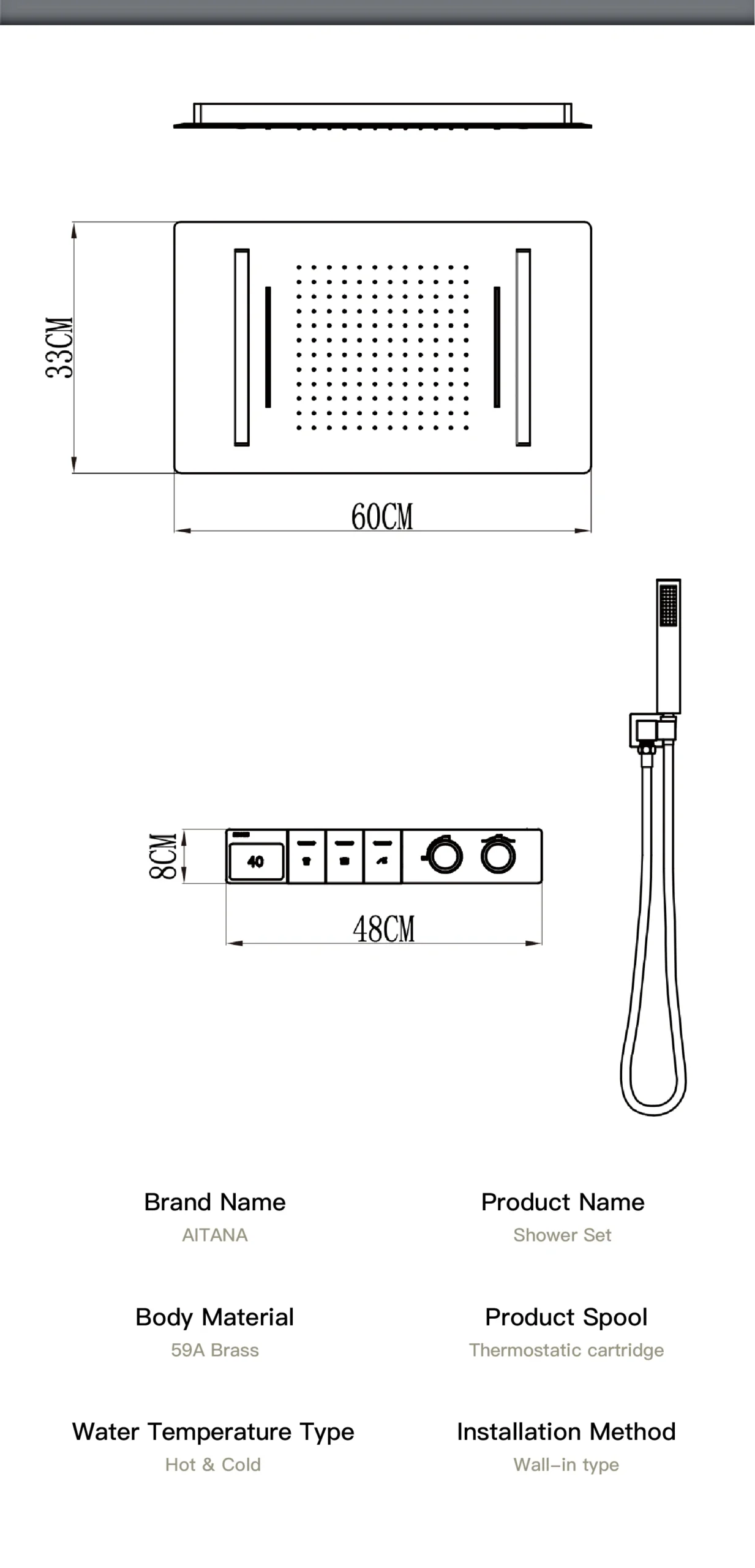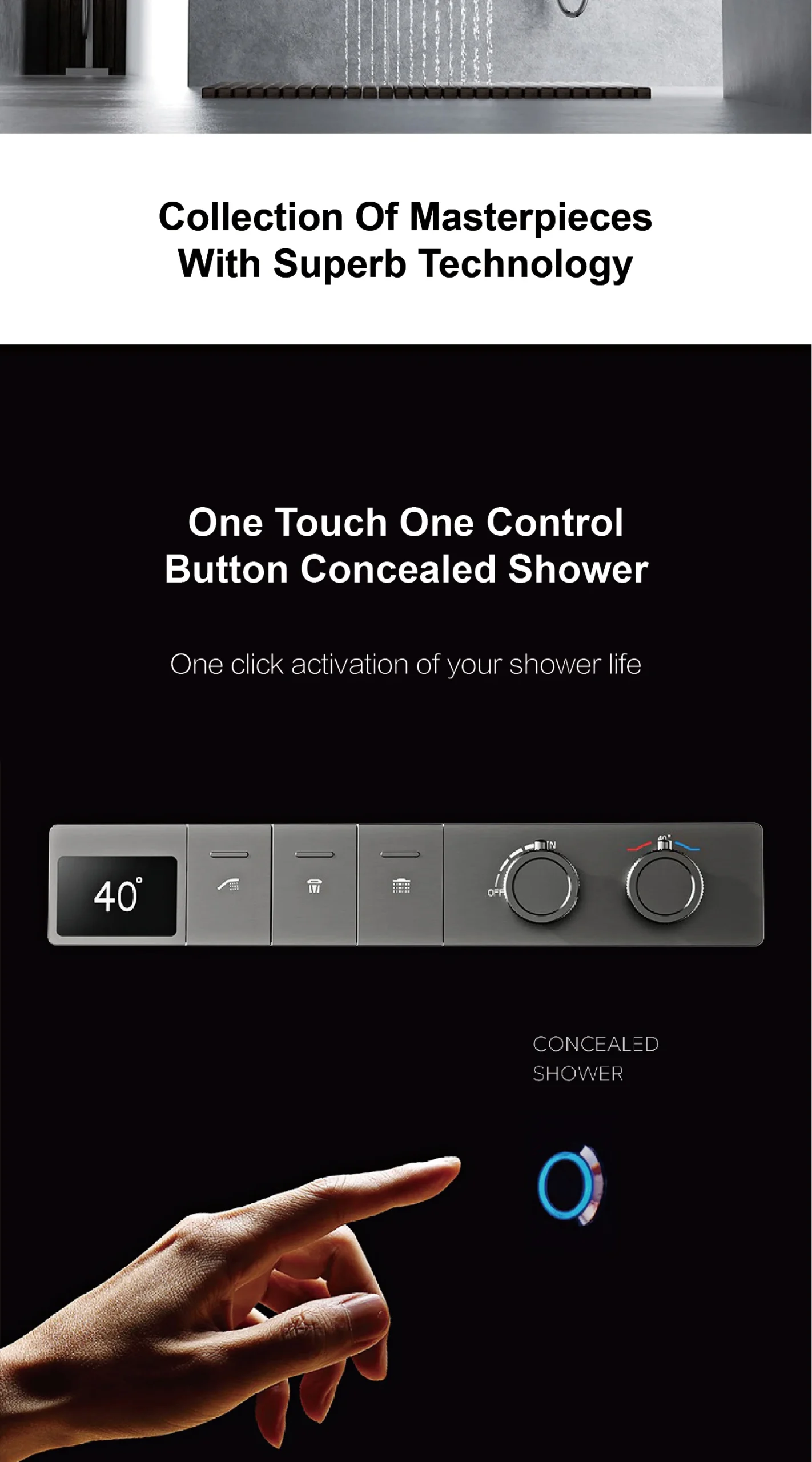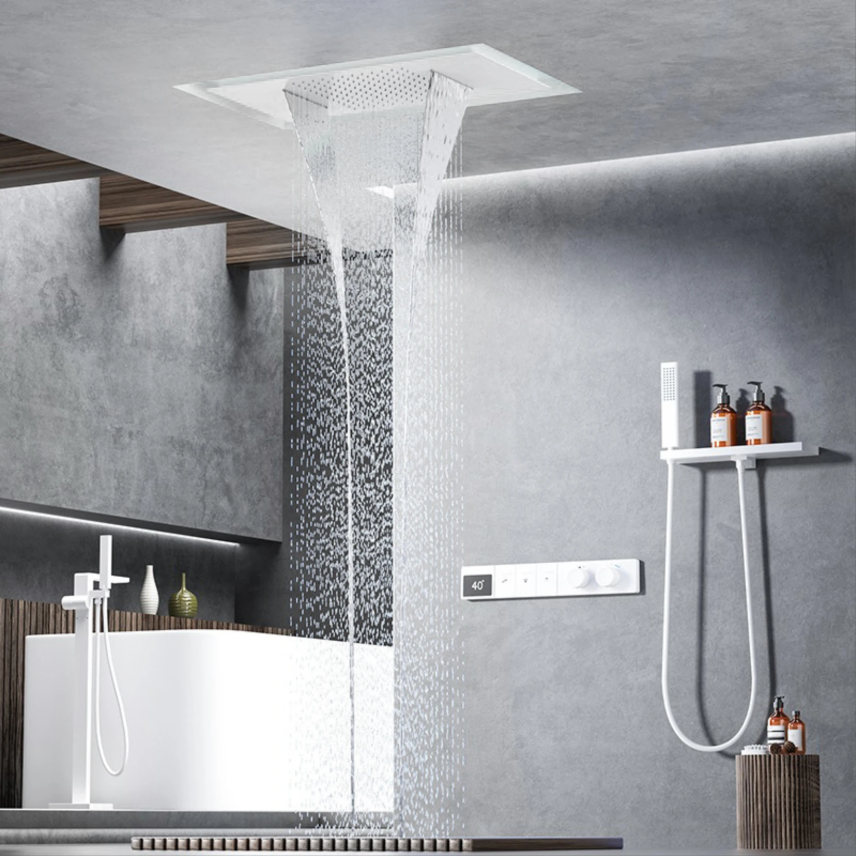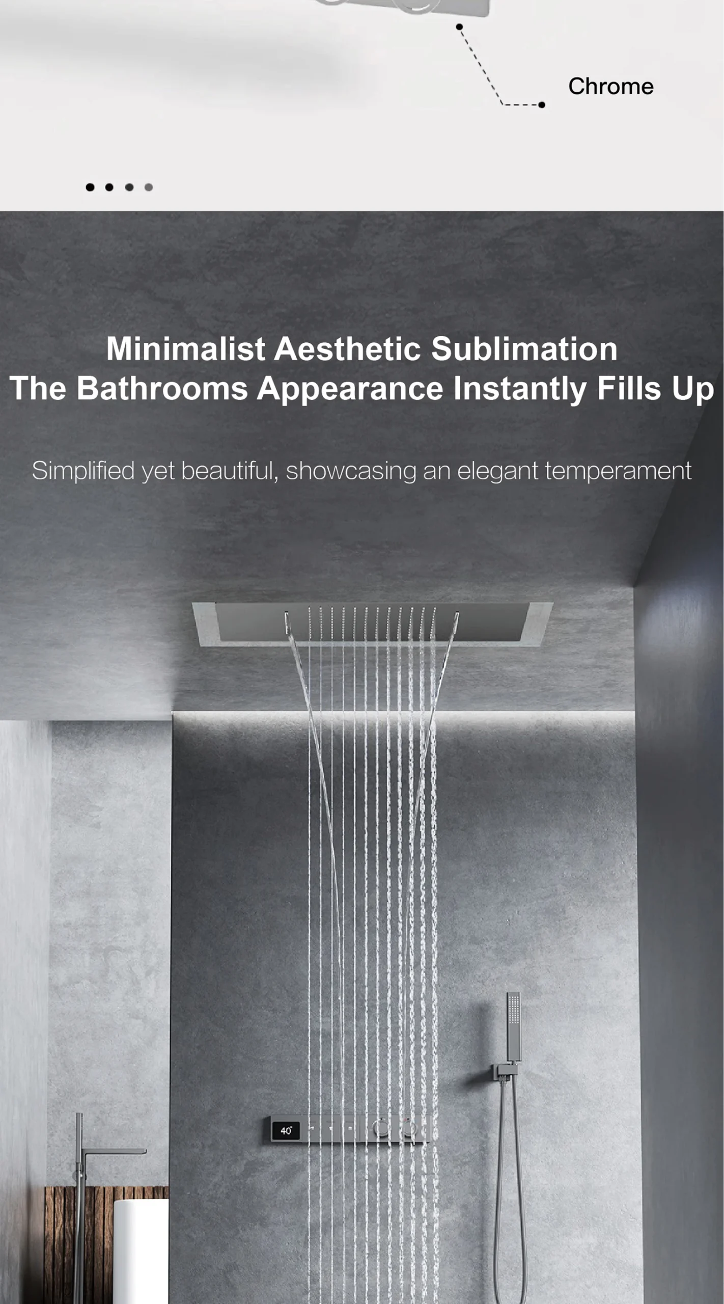 – Ceiling Mounted Design: Frees up wall space and creates a minimalist, spa-like ambiance for a truly immersive shower experience.