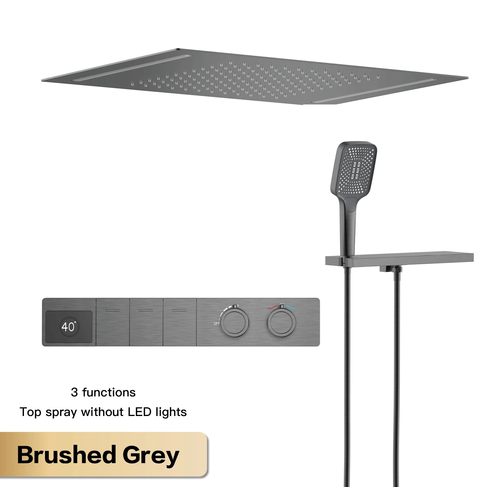 Luxury Brass Gun Gray Ceiling Constant Temperature Shower System with LED Digital Display