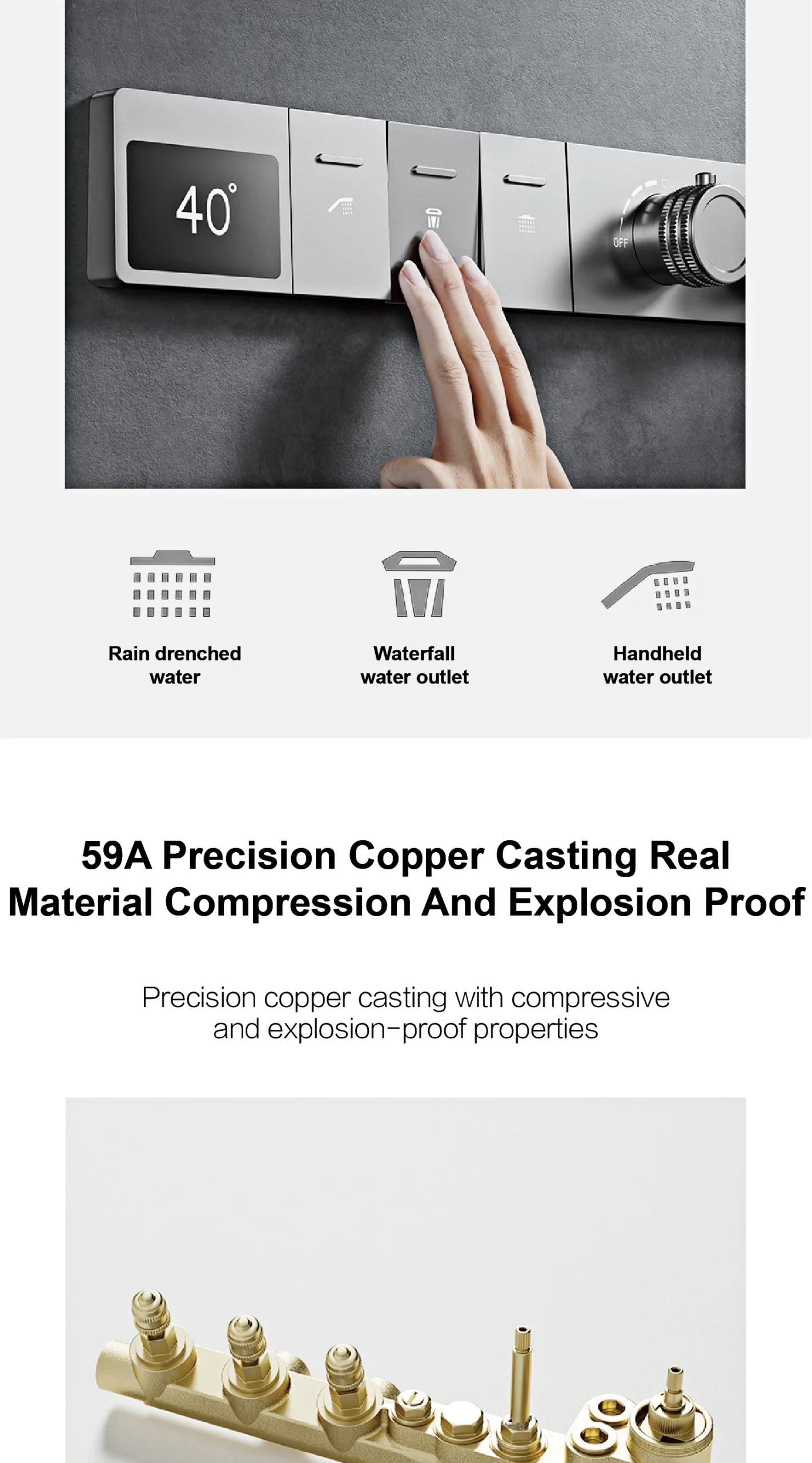 – Integrated LED Digital Display: Real-time display of water temperature, allowing you to easily adjust to your perfect setting and monitor your shower.