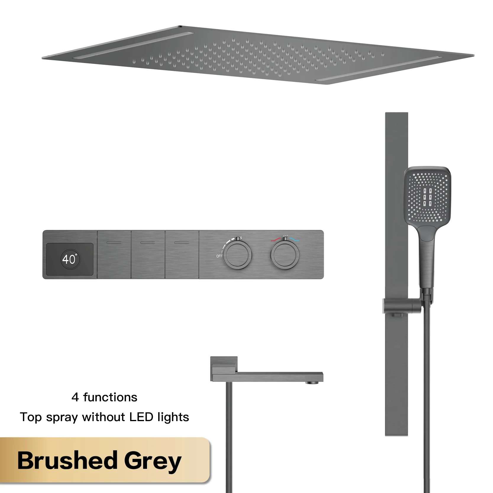 Transform your daily shower into a luxurious ritual. The constant temperature feature ensures absolute comfort and safety for the entire family, eliminating the unpredictable jolts of hot or cold water. The elegant gun gray finish and ceiling-mounted design create a visually stunning focal point, imbuing your bathroom with a sense of modern opulence. The intuitive LED display provides instant temperature feedback, allowing for effortless customization and a truly personalized shower experience. This system is ideal for anyone seeking to upgrade their bathroom with a fusion of advanced functionality and high-end aesthetics. Imagine stepping into a perfectly tempered shower, enveloped in soothing water, every single morning.