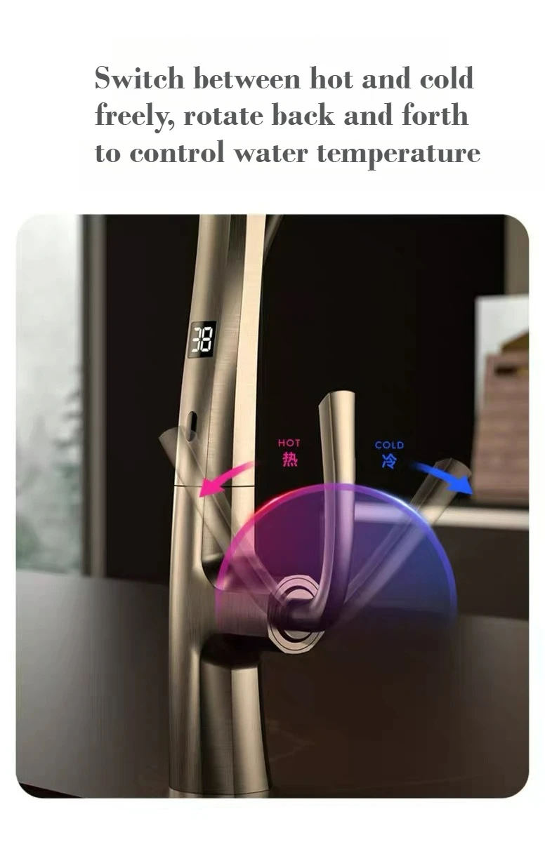 Introducing the pinnacle of kitchen innovation and design: our Luxury Brass LED Display Kitchen Faucet. This isn’t just a faucet; it’s a statement piece that seamlessly blends cutting-edge technology with timeless elegance. Designed for the discerning homeowner, it transforms your daily kitchen tasks into a refined and effortless experience, offering unparalleled convenience and a touch of modern luxury. Say goodbye to messy countertops and hello to a cleaner, more efficient, and aesthetically pleasing kitchen.