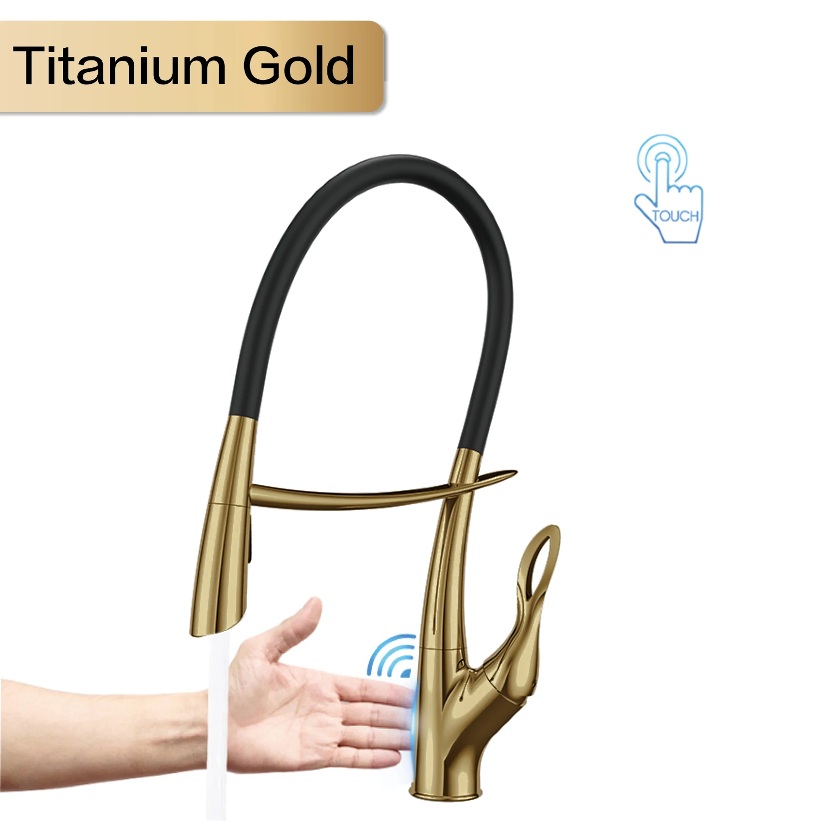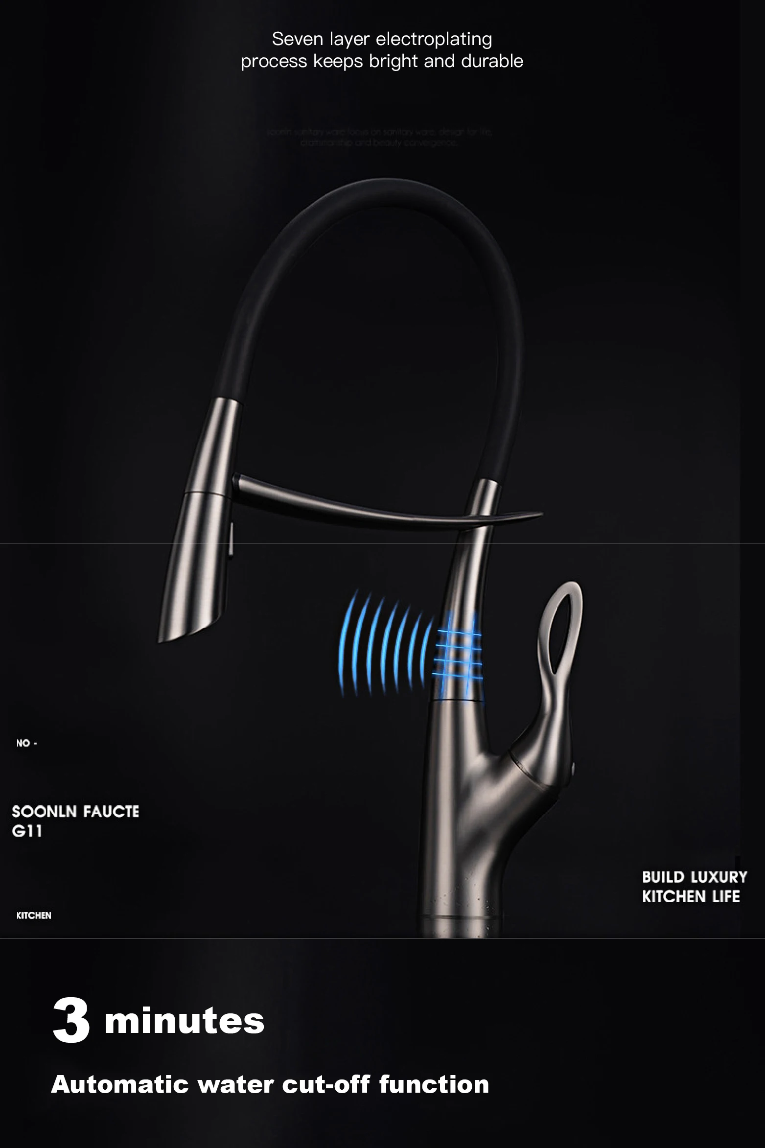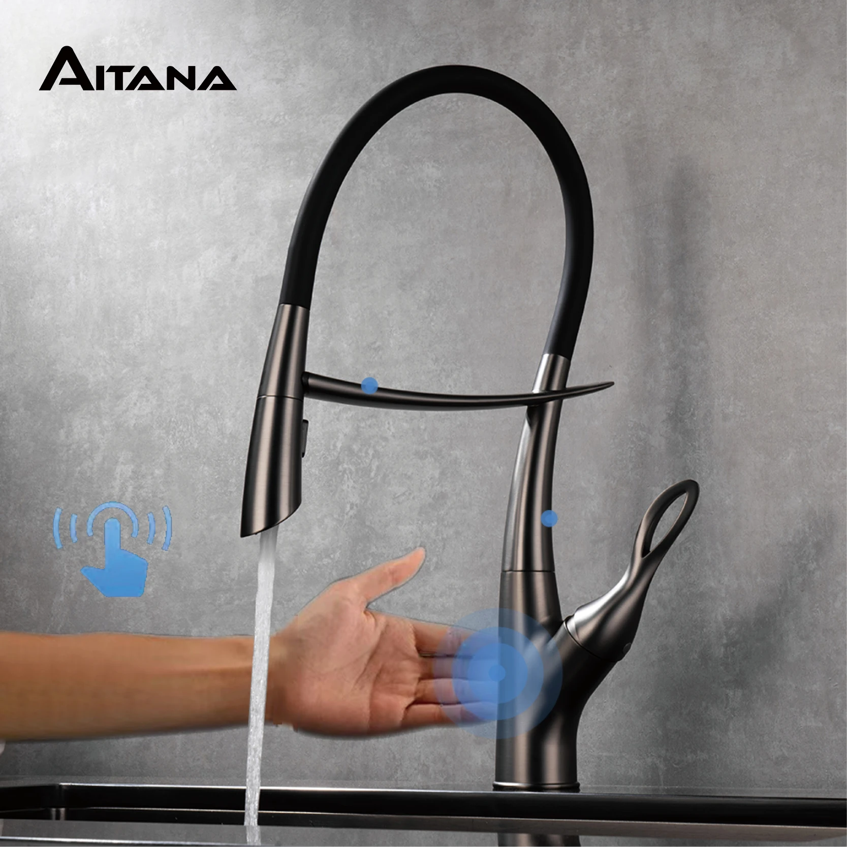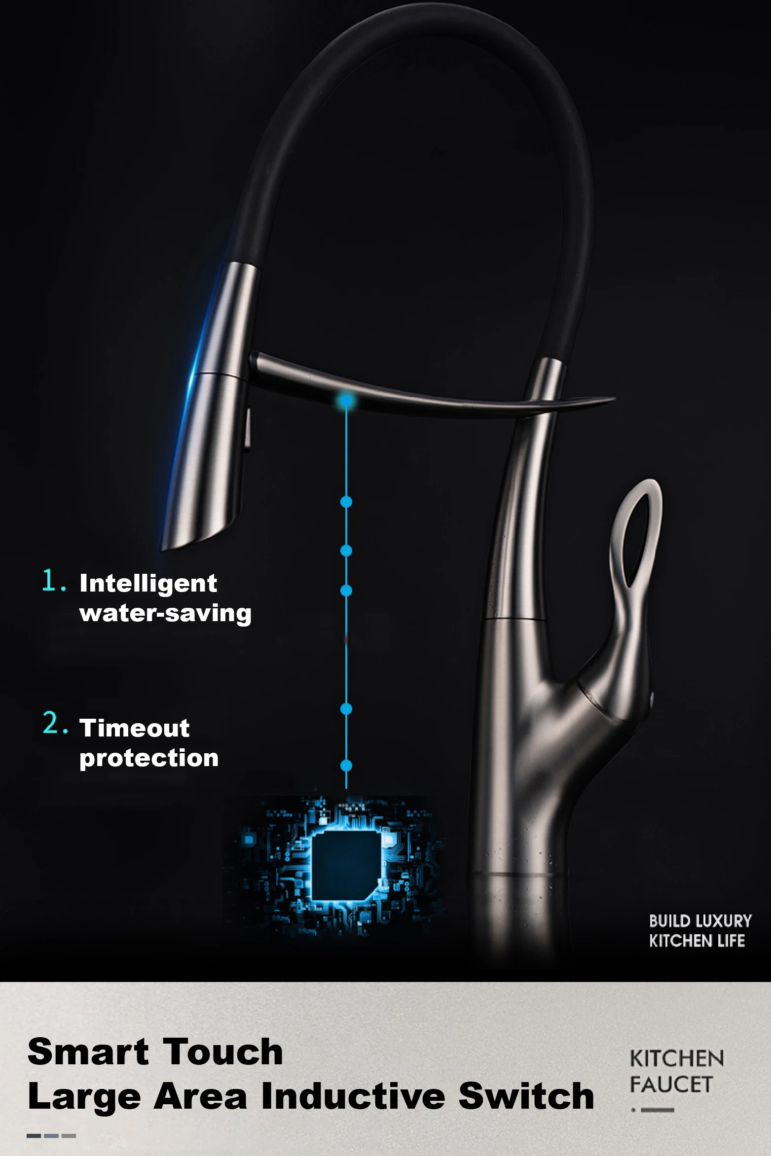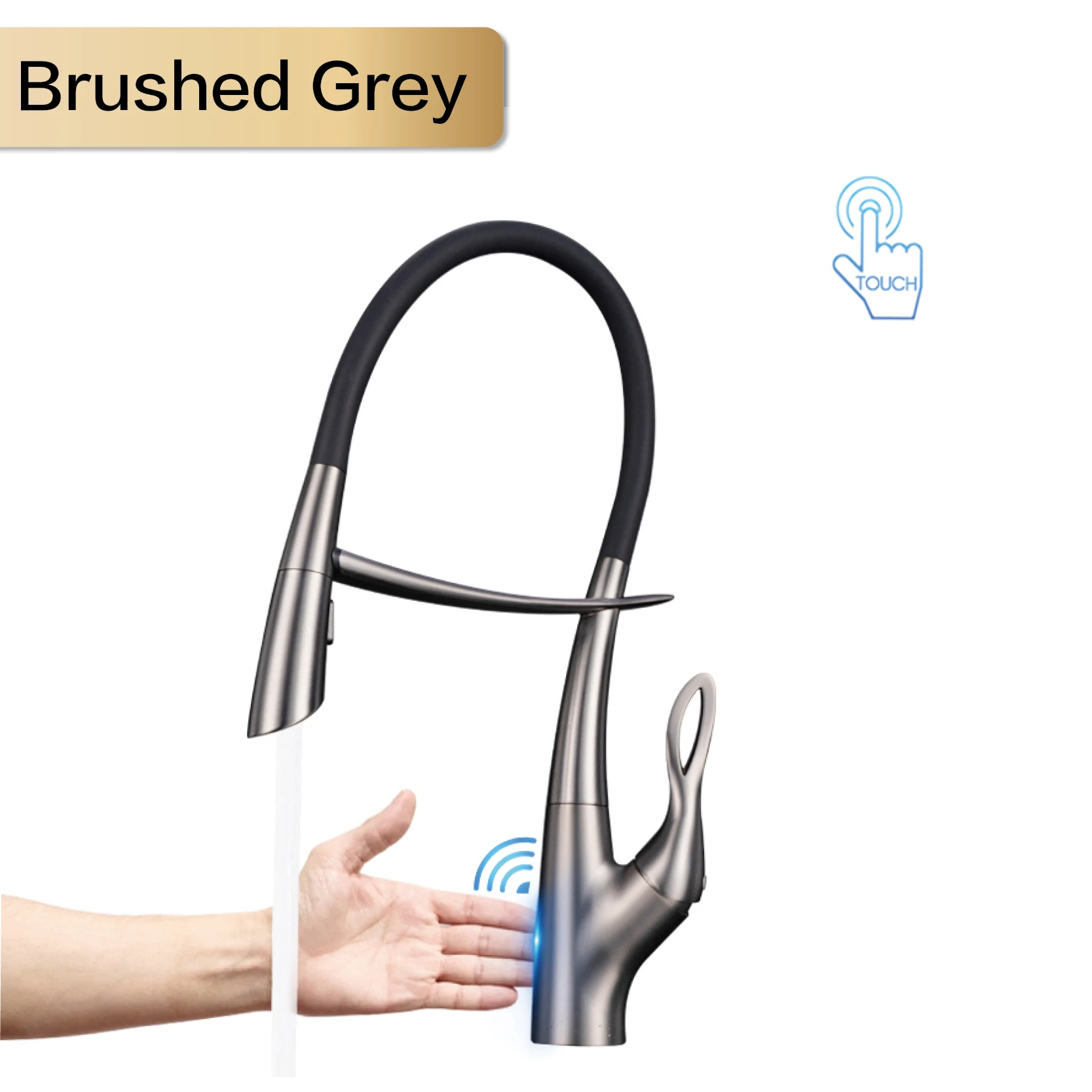 h1 Luxury Gun Gray Brass Kitchen Faucet with Intelligent Touch Design