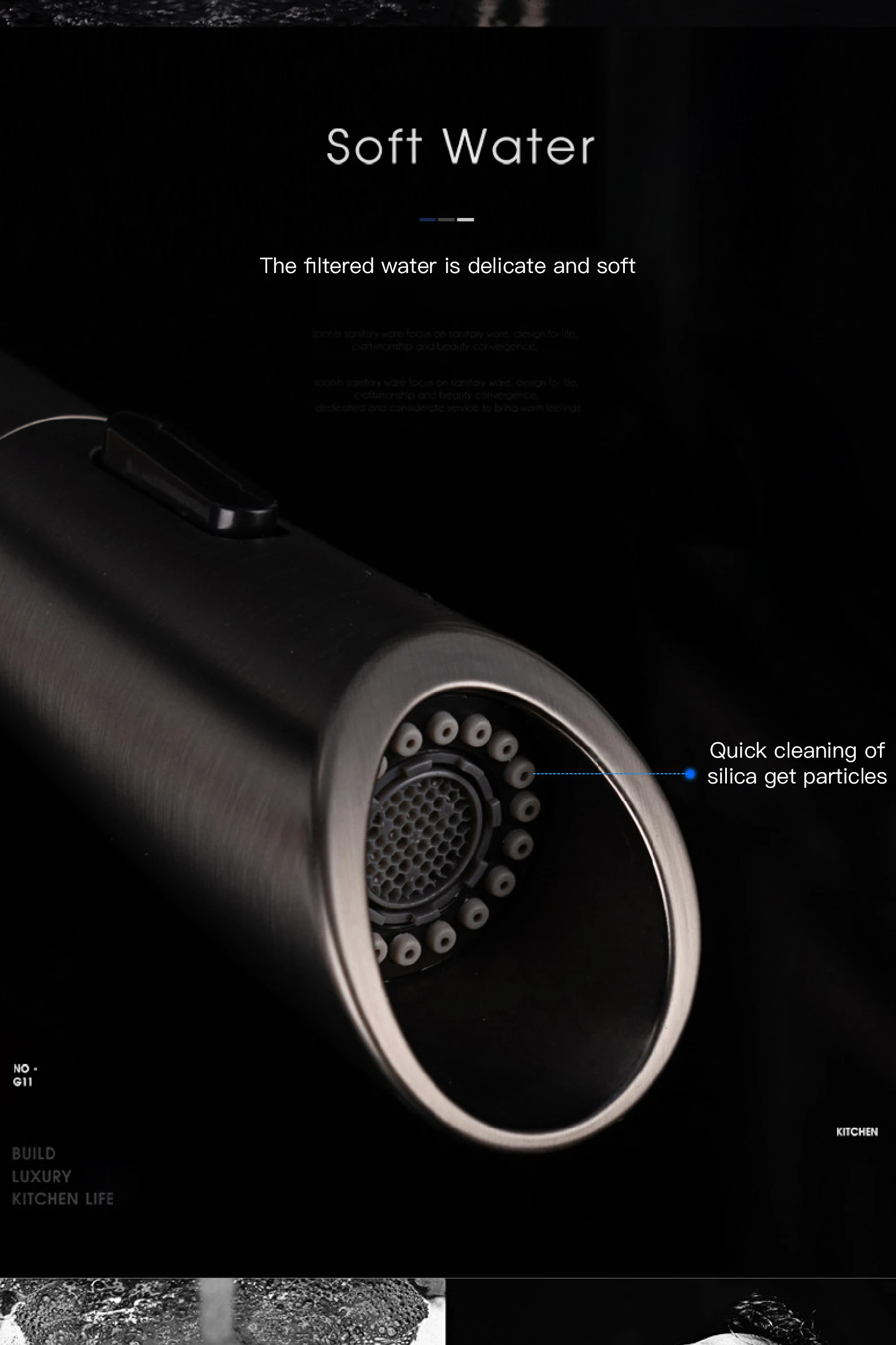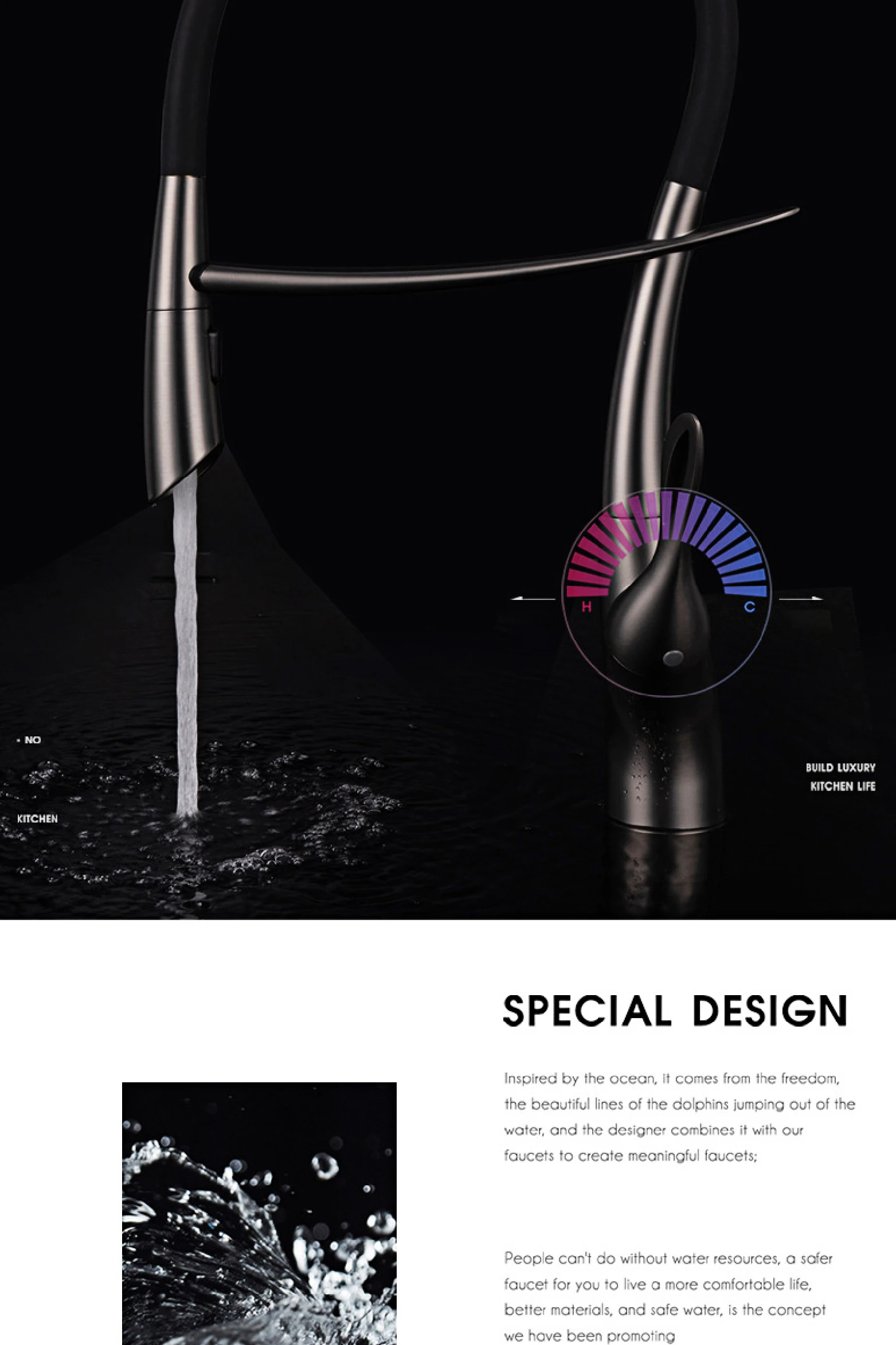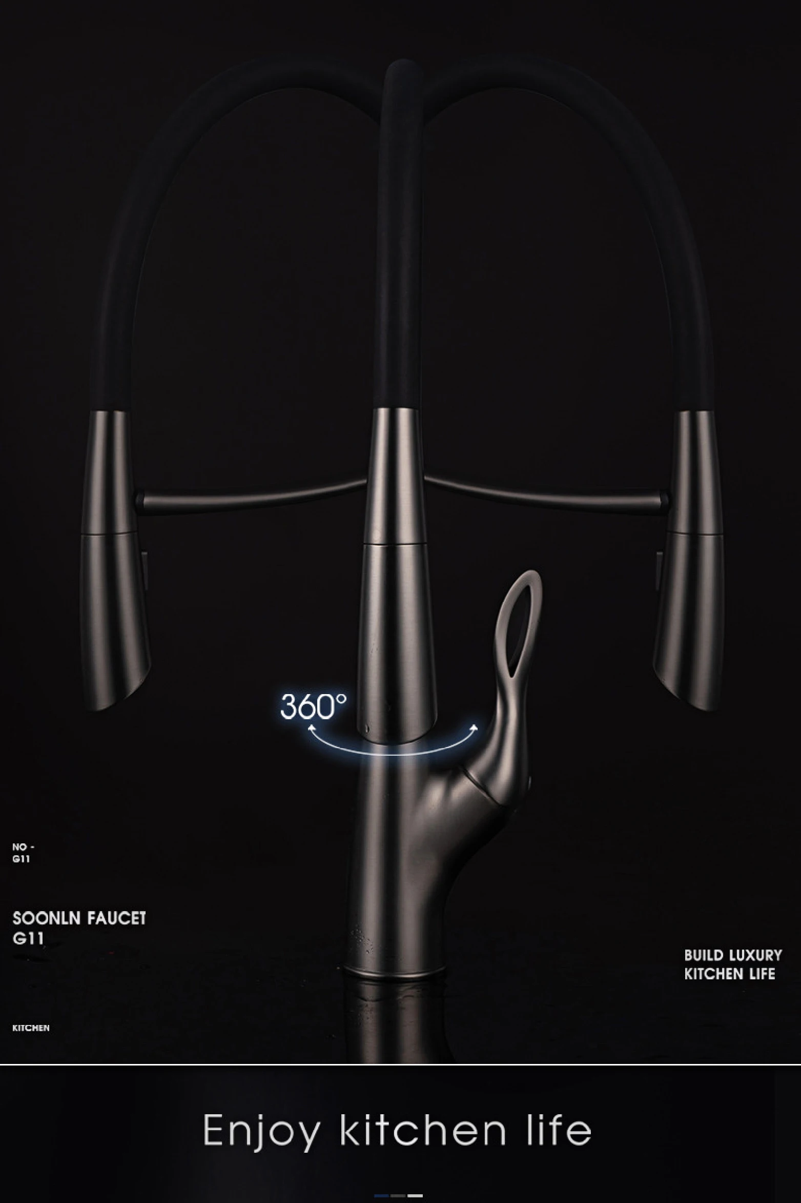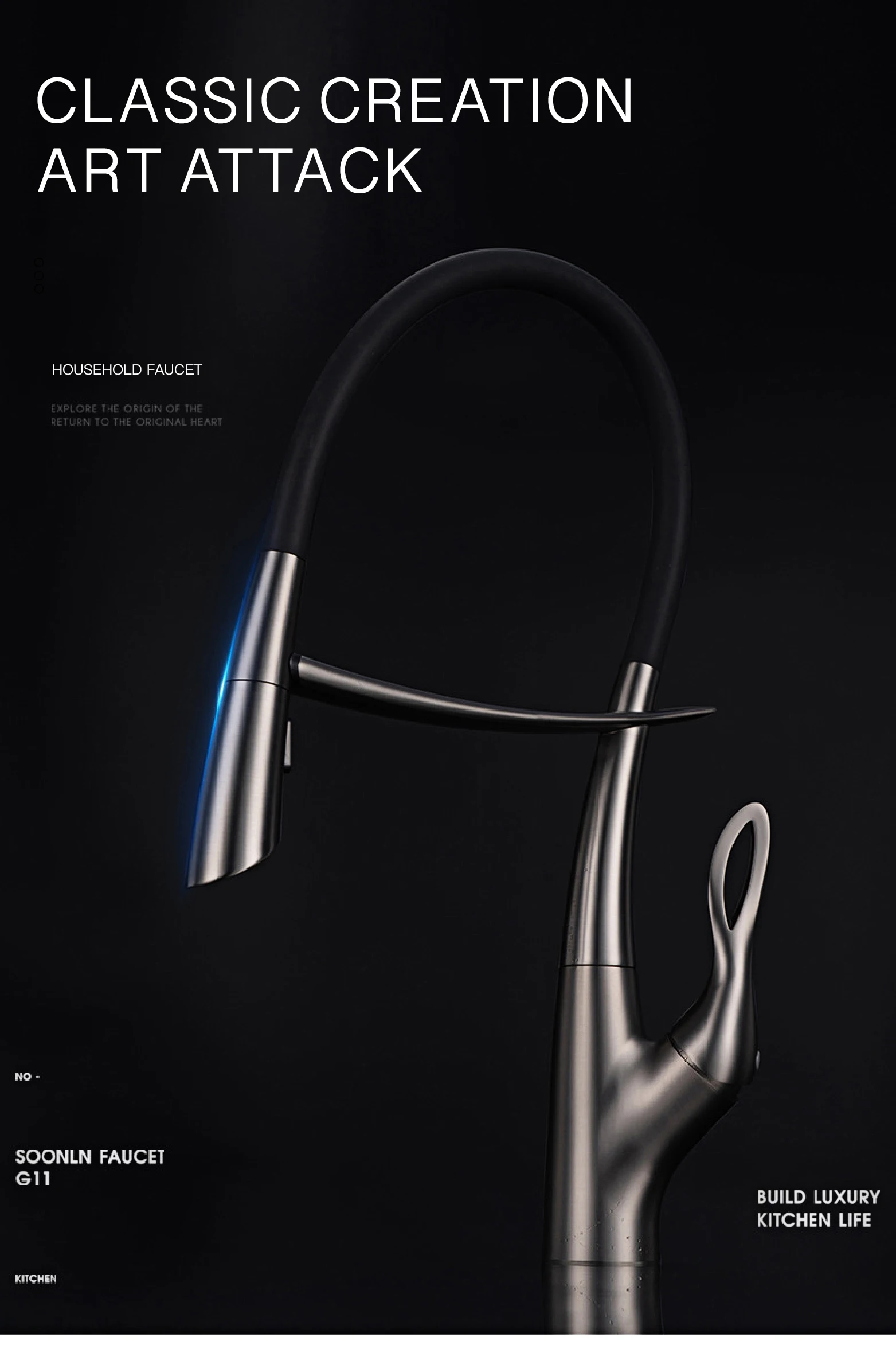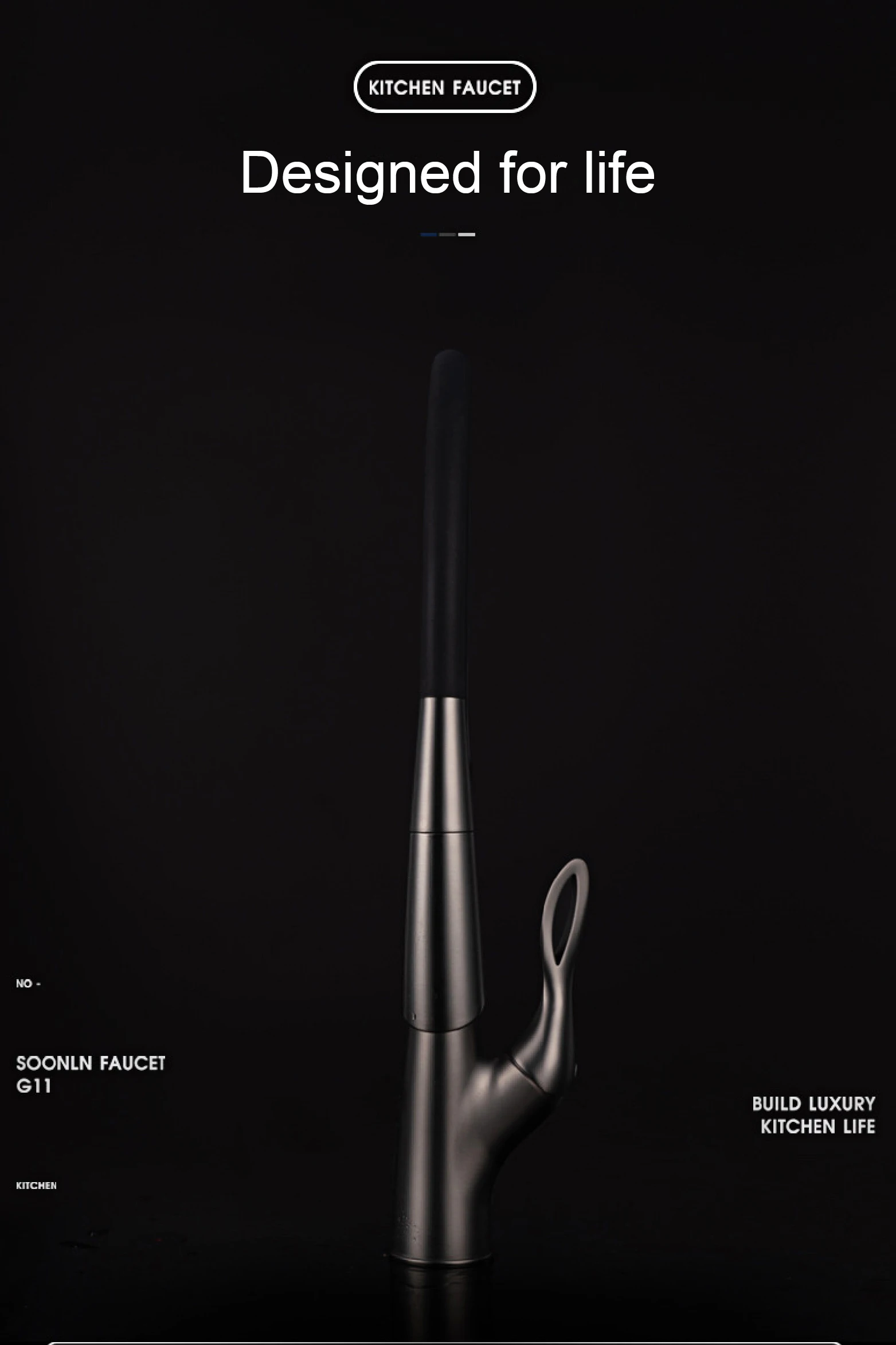 Introducing a masterpiece of modern kitchen design, this luxury gun gray brass kitchen faucet seamlessly blends sophisticated aesthetics with cutting-edge functionality. Crafted for the discerning homeowner, it transforms an everyday task into an elegant experience. The gun gray brushed finish exudes understated opulence, while the intelligent touch design offers intuitive control, making this faucet a true centerpiece for any contemporary kitchen.
