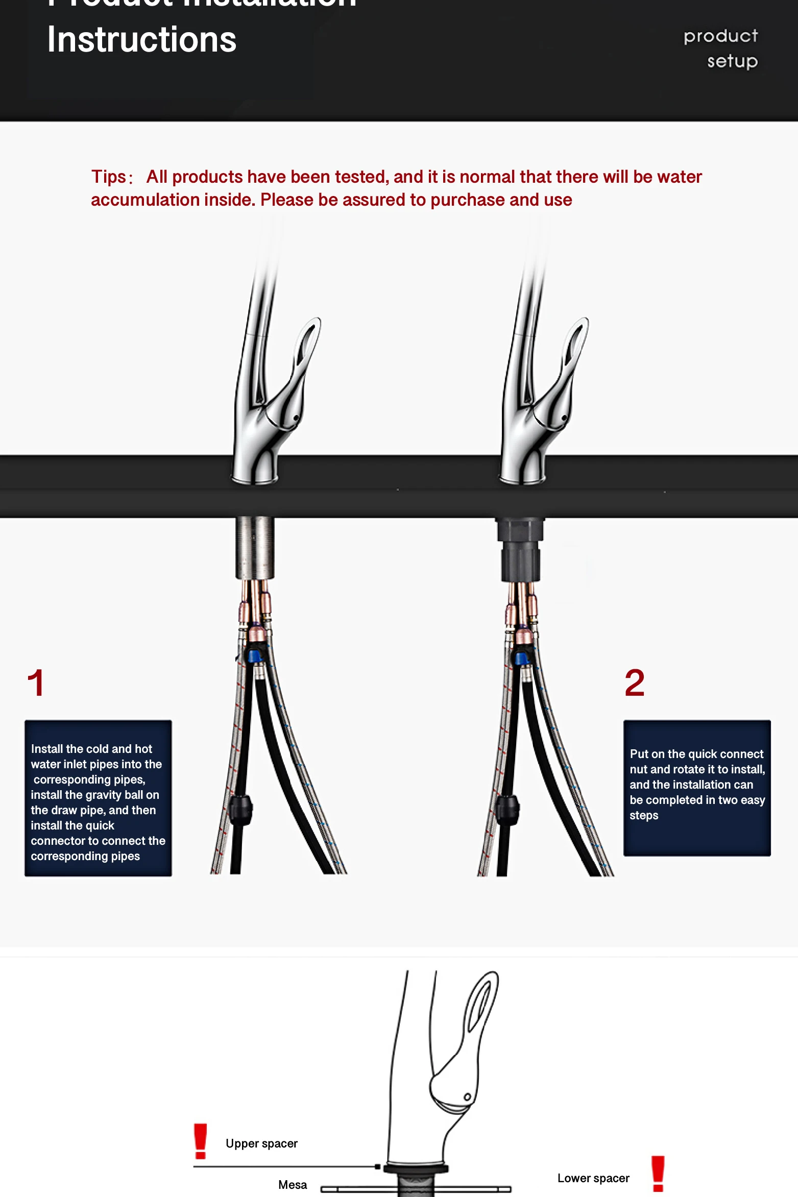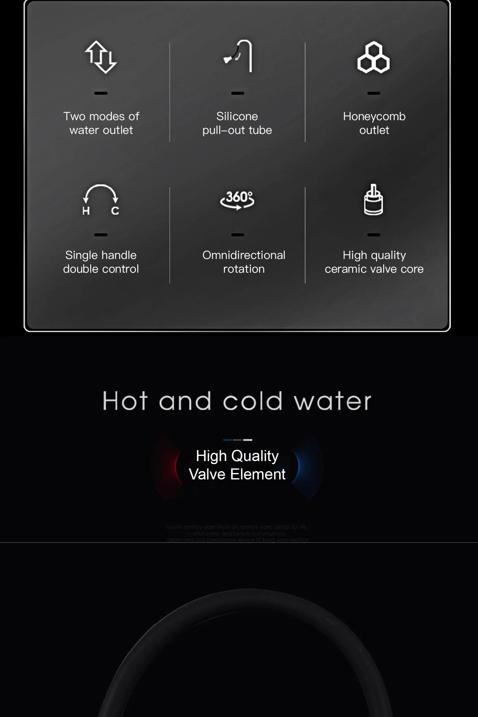 - Magnetic Suction Spray Head: The innovative magnetic docking system ensures the spray head securely snaps back into place, maintaining a clean and streamlined look.