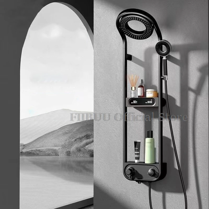 h1 Luxury Shower System For Bathroom Pressurized Rain Mixer Combo Wall Mounted Rainfall Shower Panel Head System Digital Display