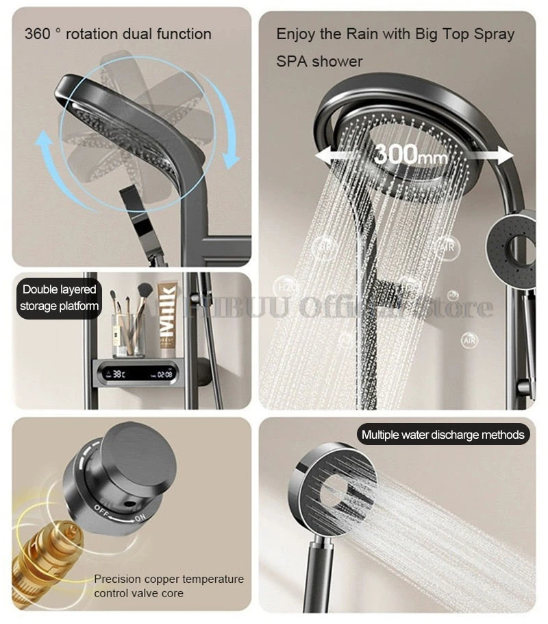 Transform your bathroom into a personal sanctuary with our exquisite Luxury Shower System. Designed for the discerning individual, this state-of-the-art system delivers an unparalleled showering experience, blending advanced technology with sophisticated design. Forget mundane showers; immerse yourself in a cascading rainfall, invigorating jets, and precise temperature control for ultimate relaxation and rejuvenation.
