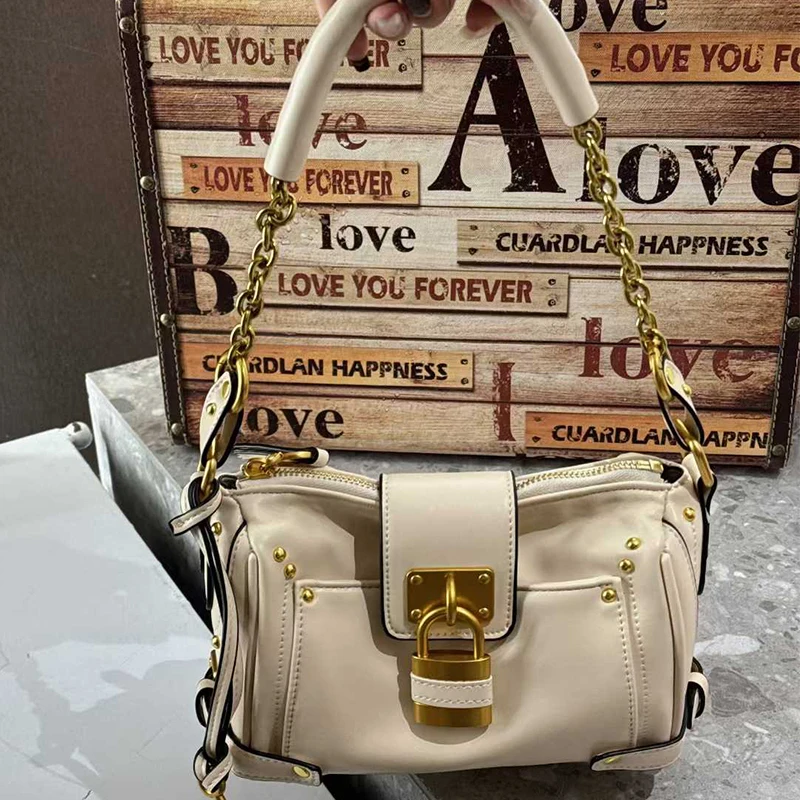 Luxury Tote Bag Waterproof Women Vintage Lock Buckle Design Hand-held Underarm Bag Female Large Boston Hobos Business Handbag