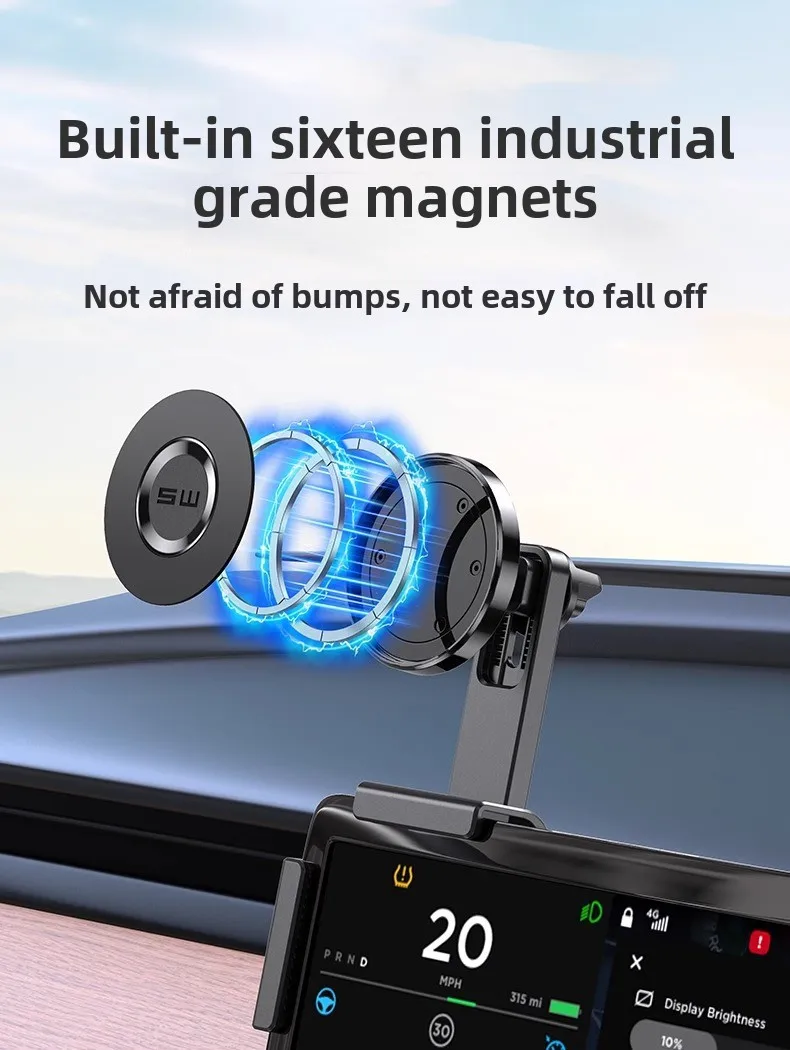 Crafted from durable, high-quality materials, this phone holder resists wear and maintains a stable grip even on bumpy roads. To maintain optimal performance, simply wipe the holder with a soft, dry cloth—no special cleaning agents required. Offering a perfect blend of style, functionality, and durability, this magnetic car mount is a must-have accessory for Tesla owners seeking convenience and safety on every drive.