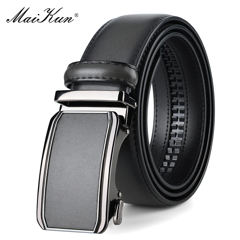 Experience unmatched style and comfort with the Maikun Leather Ratchet Belt for Men. Featuring an adjustable click buckle for a perfect fit, premium leather in versatile black, brown, or gray, and multiple length options. Elevate your wardrobe with this durable, sleek accessory.