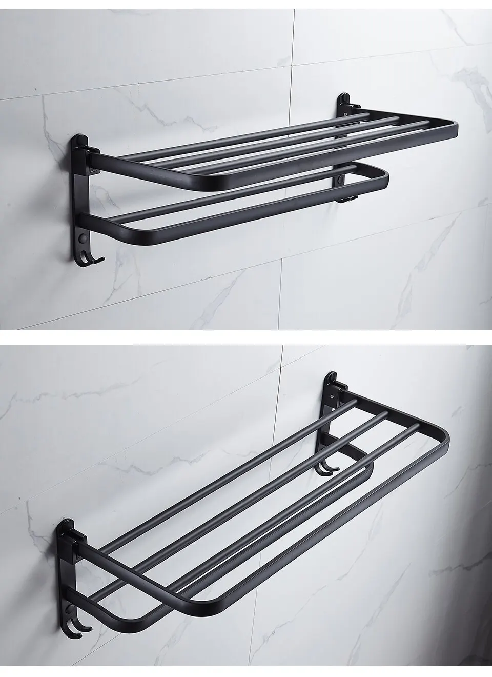 Matte Black 50 CM Folding Holder With Hook Towel Holder Wall Mount Aluminum Towel Rack