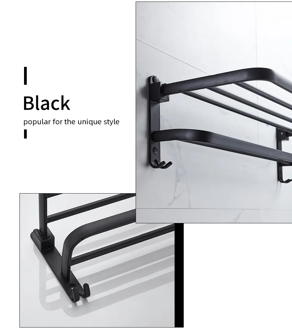 Crafted from high-quality aluminum, this towel rack is built to withstand the humid environment of a bathroom, resisting moisture and preventing rust or discoloration. The matte black finish not only enhances its visual appeal but also provides a smooth, easy-to-clean surface. Installation is straightforward, with all necessary hardware included, allowing you to quickly and securely mount the rack to your wall. This towel holder is not just a practical accessory; it’s a statement piece that enhances the overall aesthetic of your bathroom, offering a clean, organized, and visually appealing environment. Perfect for modern homes seeking both style and functionality.
