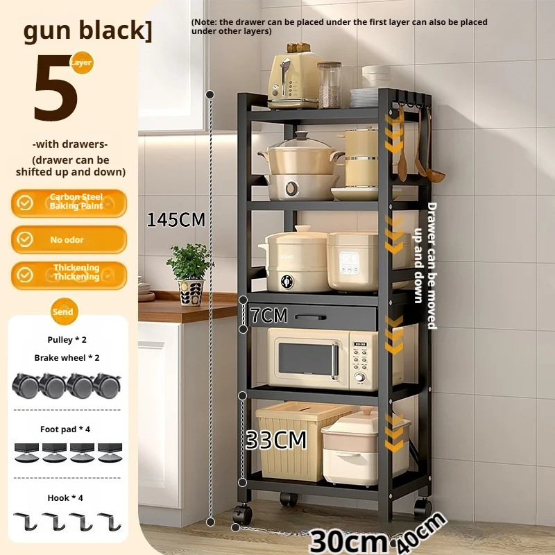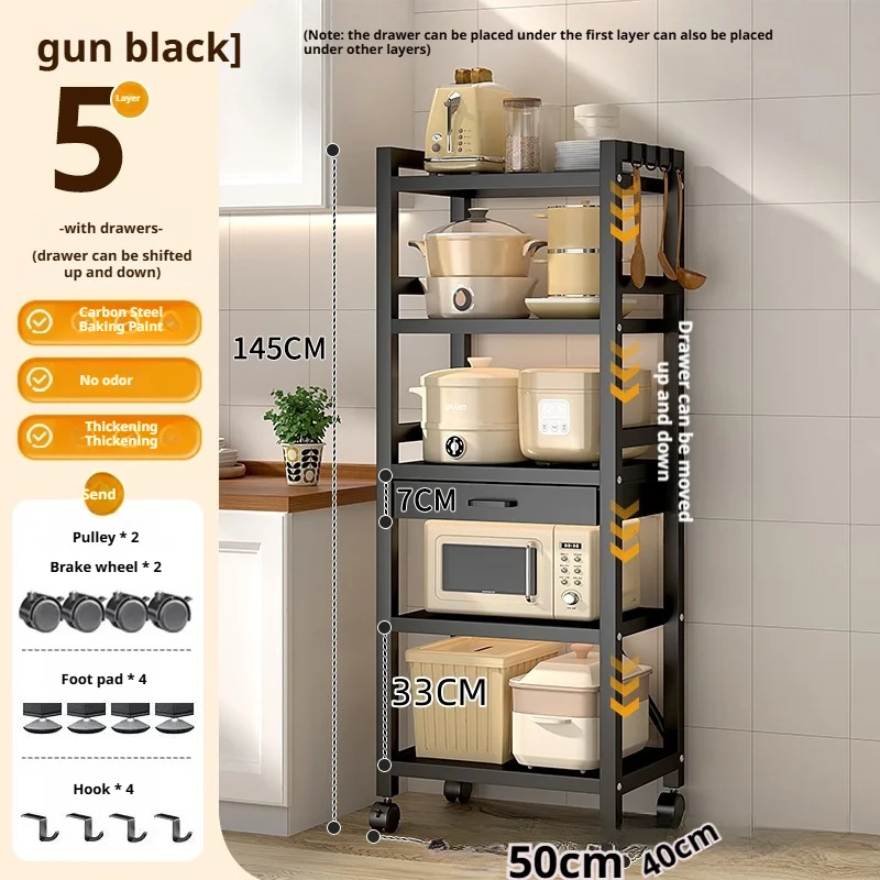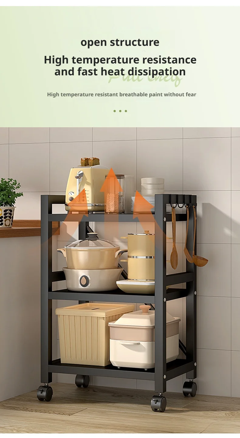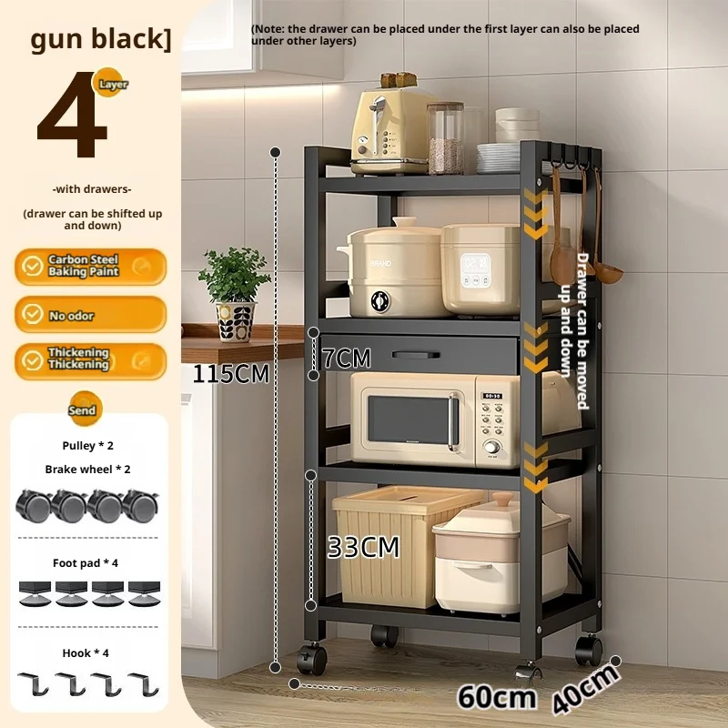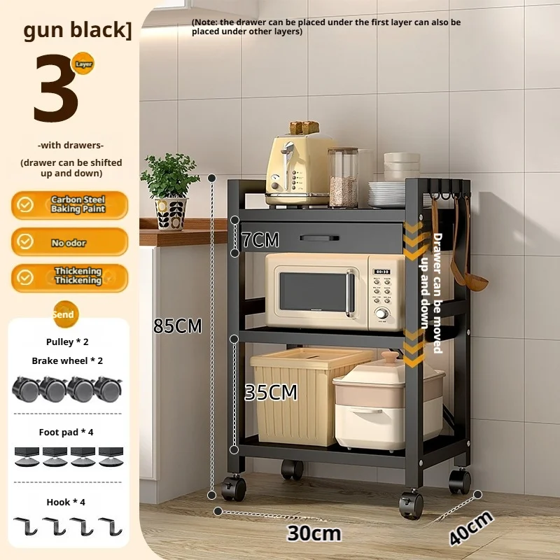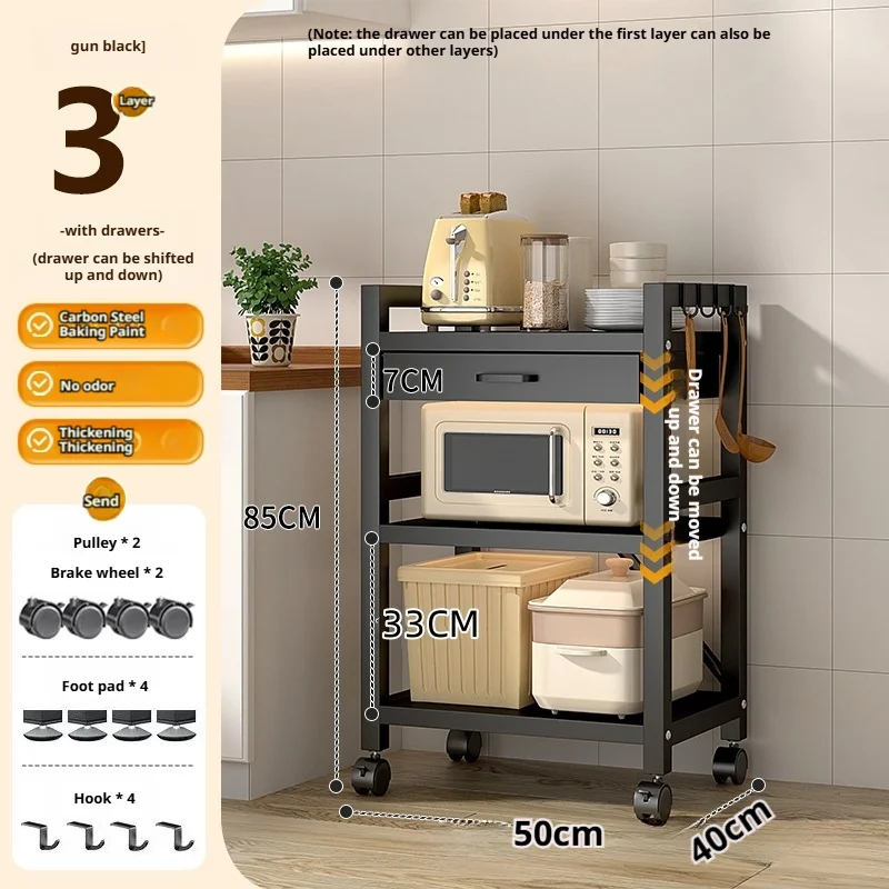 - Multi-Tiered Design: Offers ample shelving space for microwaves, ovens, cookware, utensils, and more.