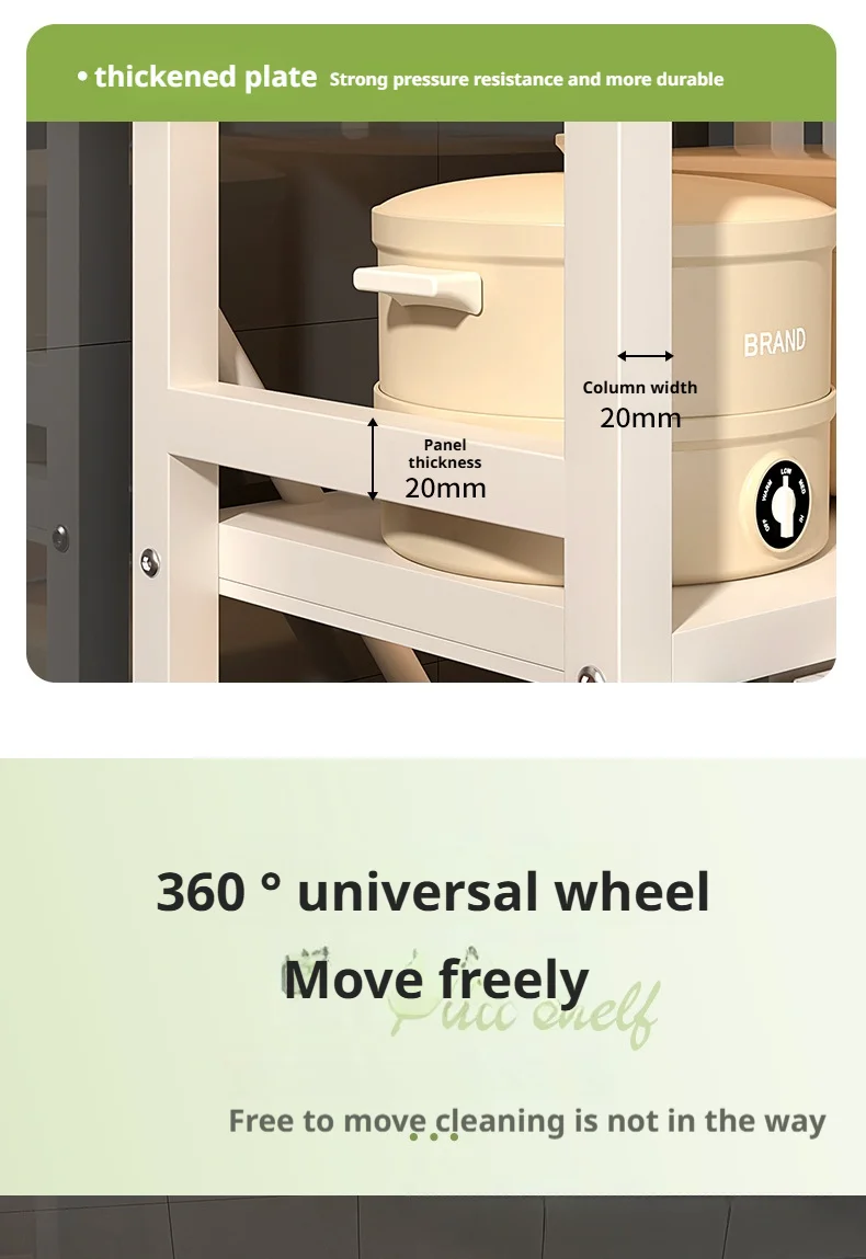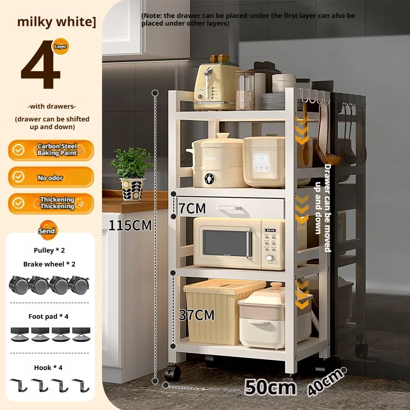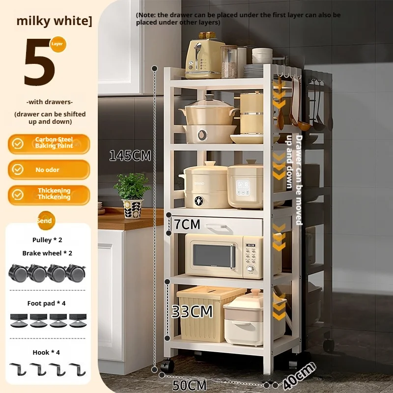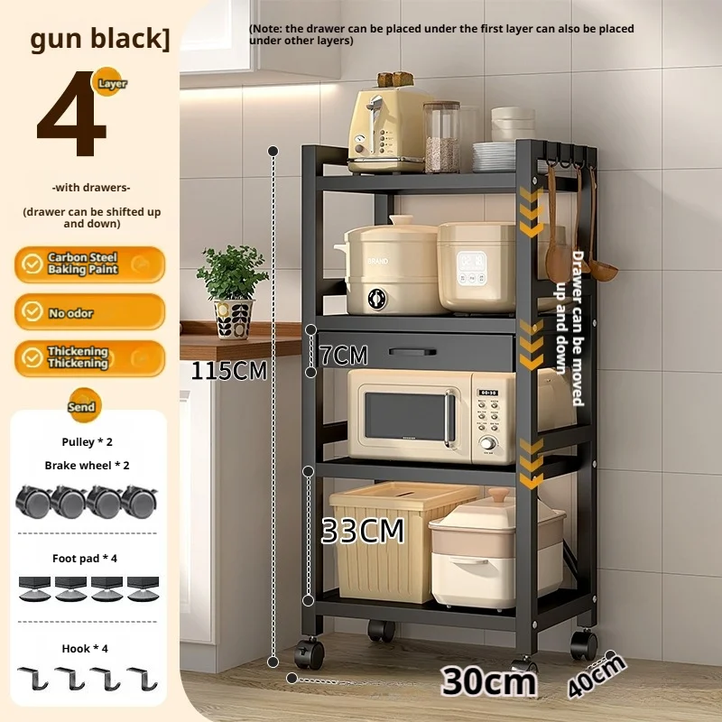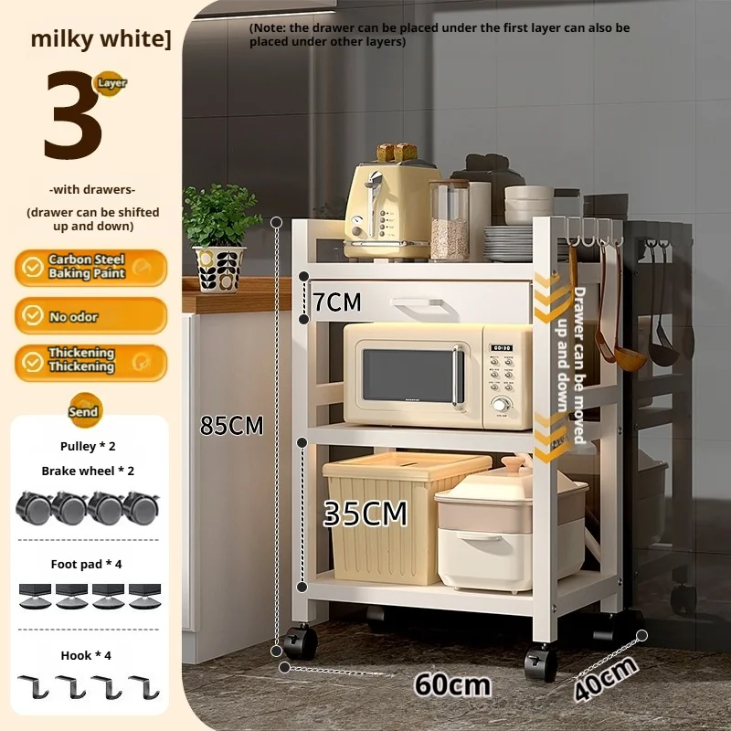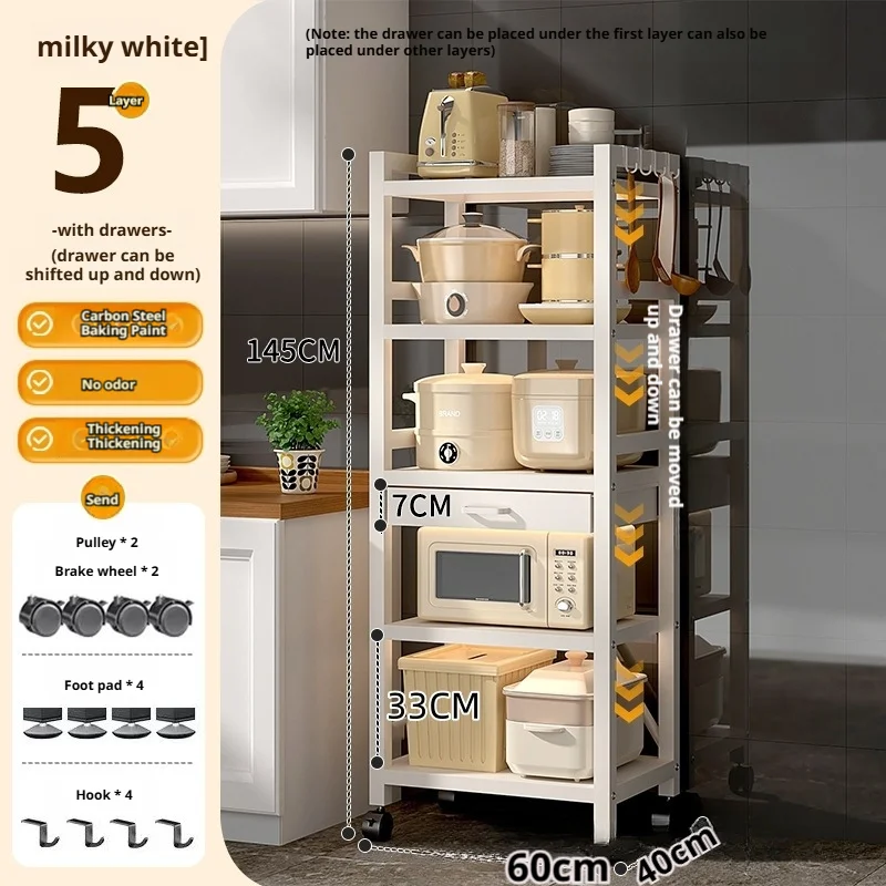 - Multi-Tiered Design: Offers ample shelving space for microwaves, ovens, cookware, utensils, and more.