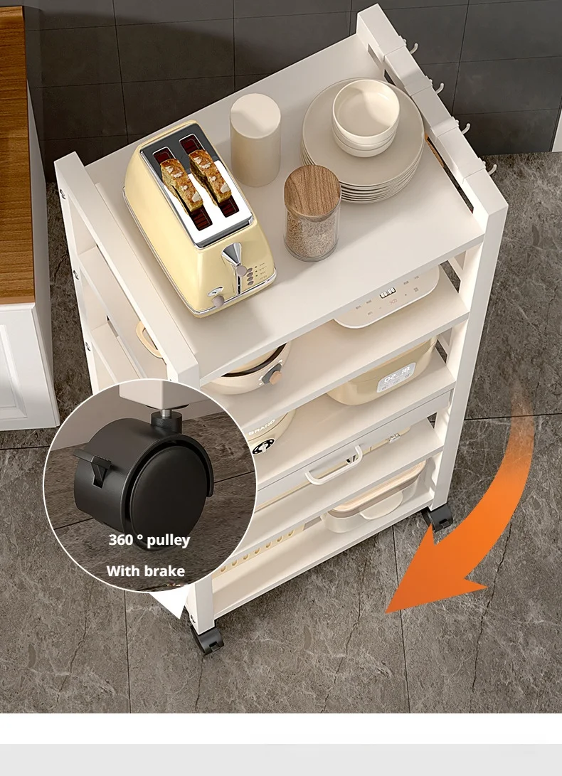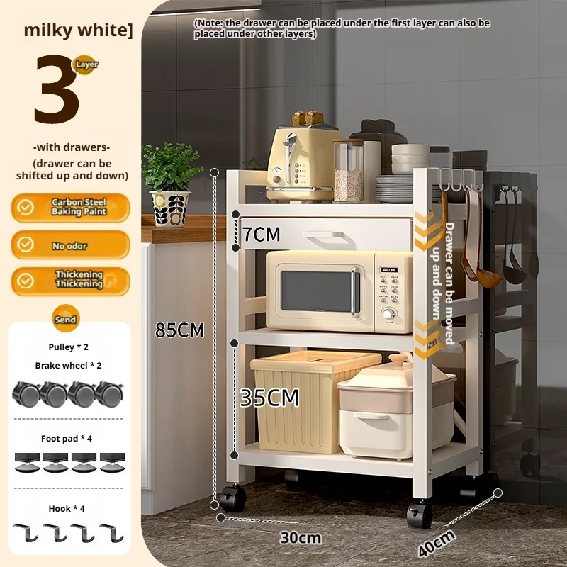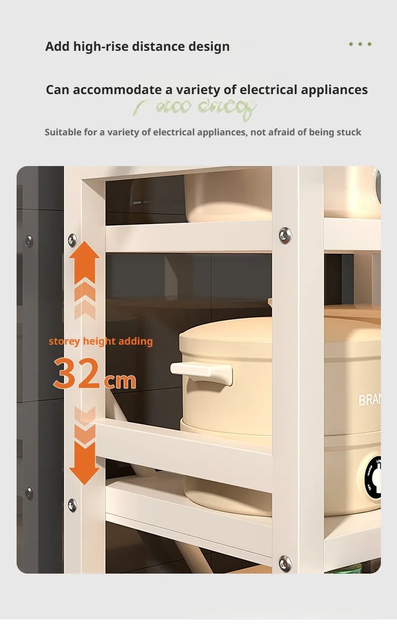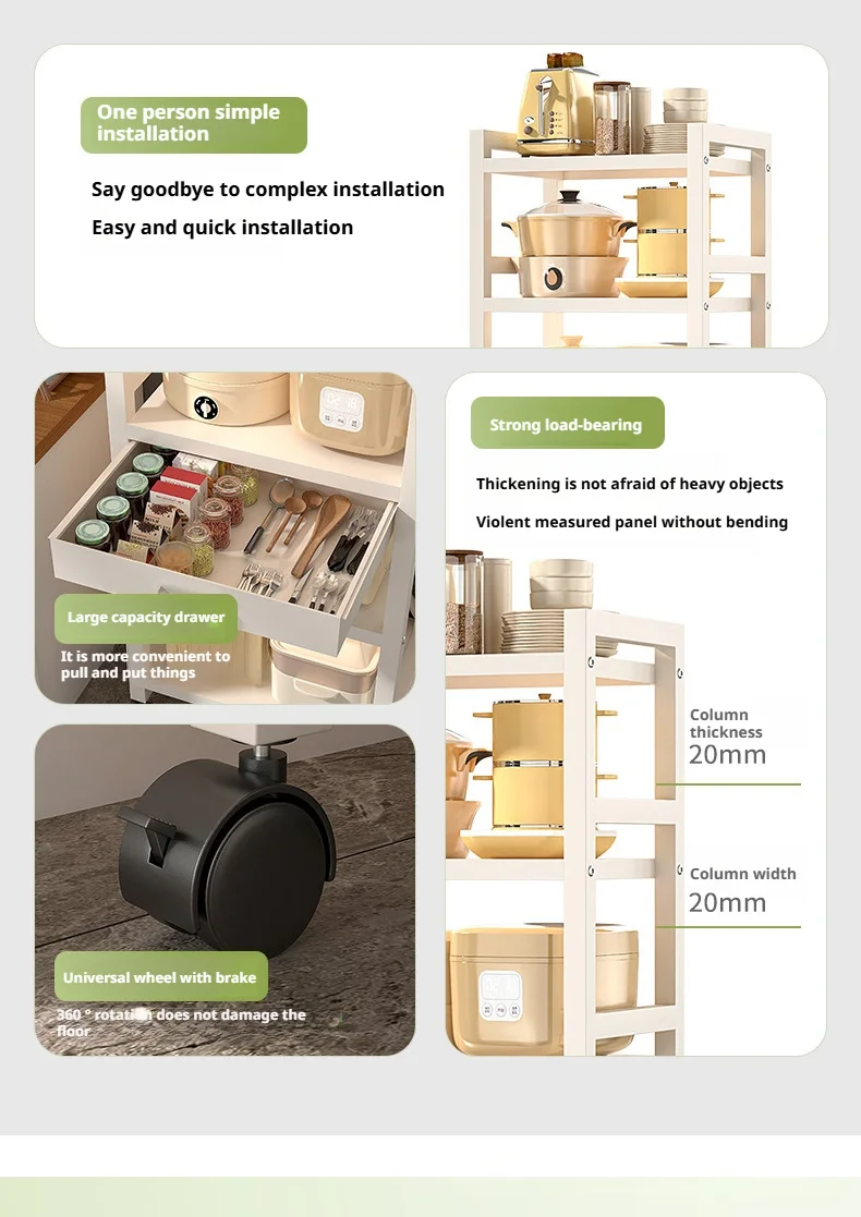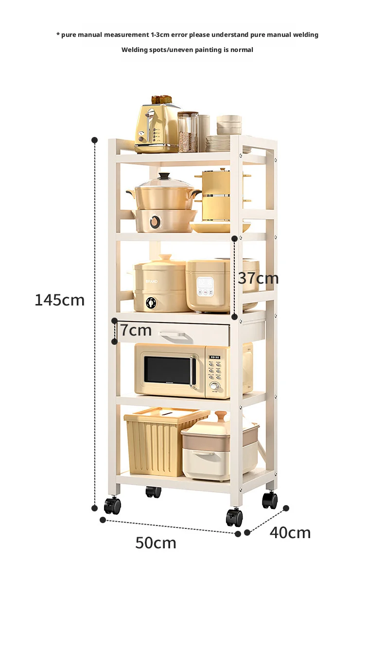 - Multi-Tiered Design: Offers ample shelving space for microwaves, ovens, cookware, utensils, and more.