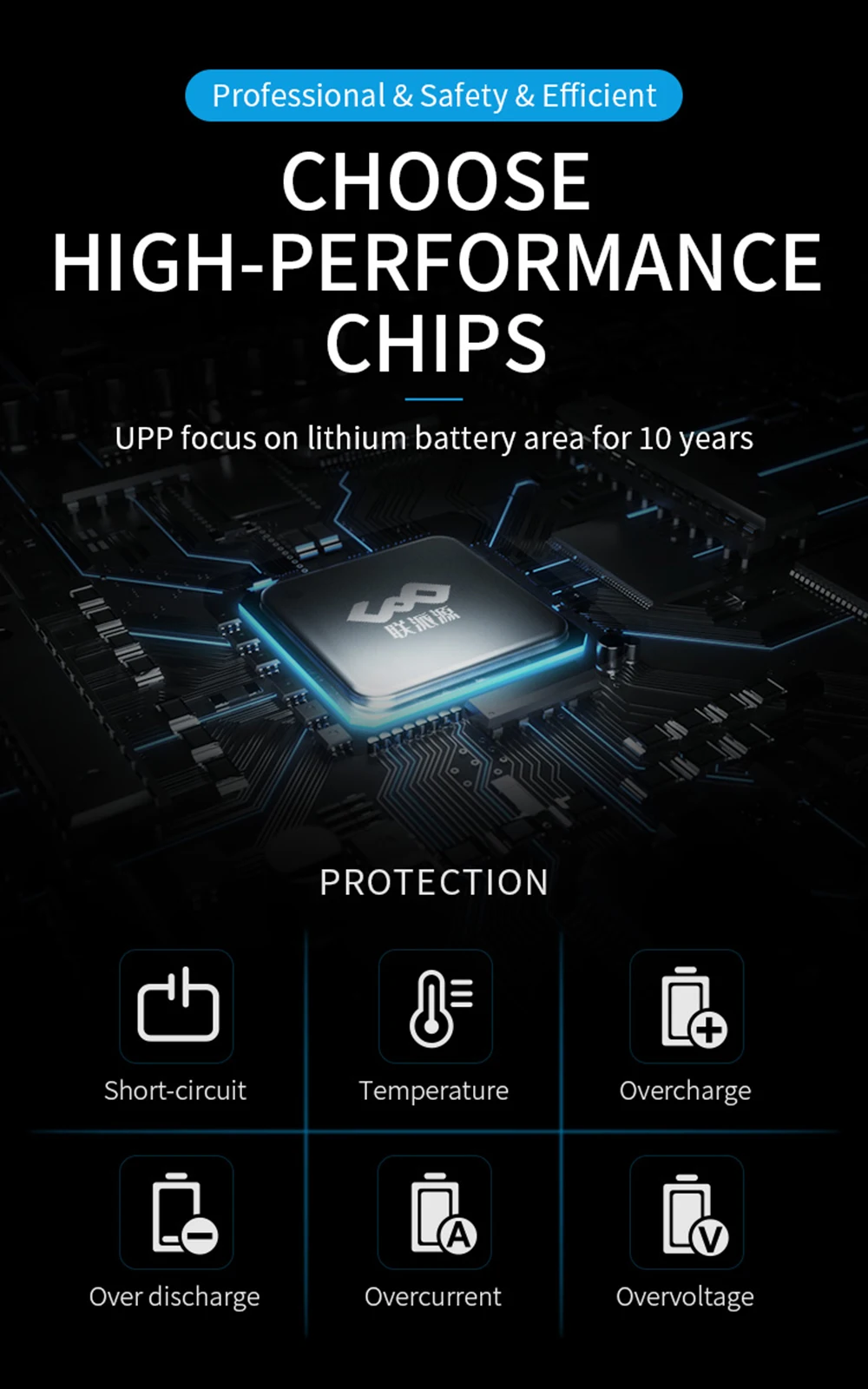 – Efficient battery management system (BMS) protects against overcharging, overheating, and short circuits, maximizing battery life