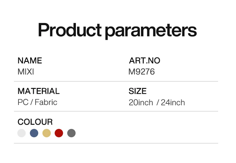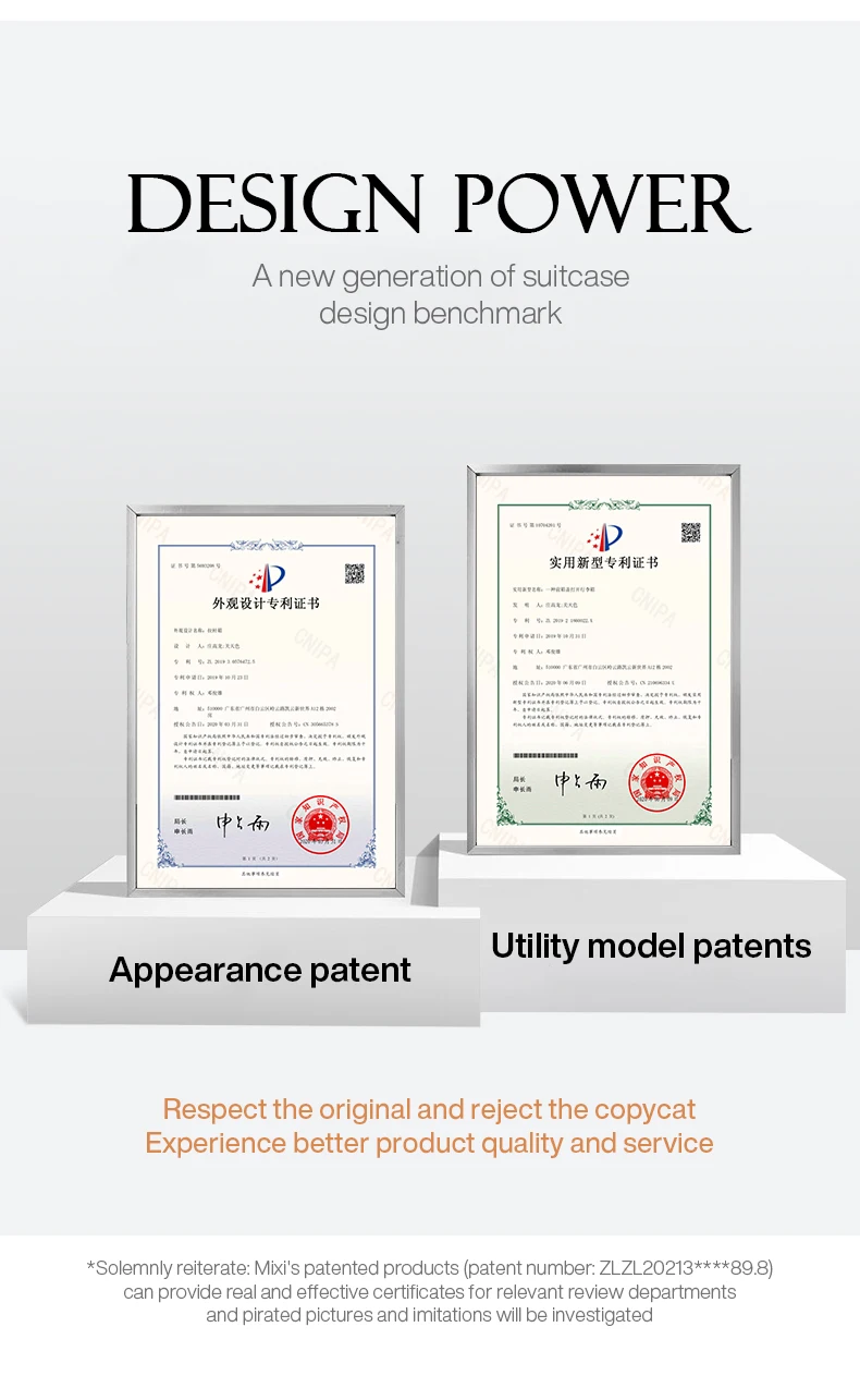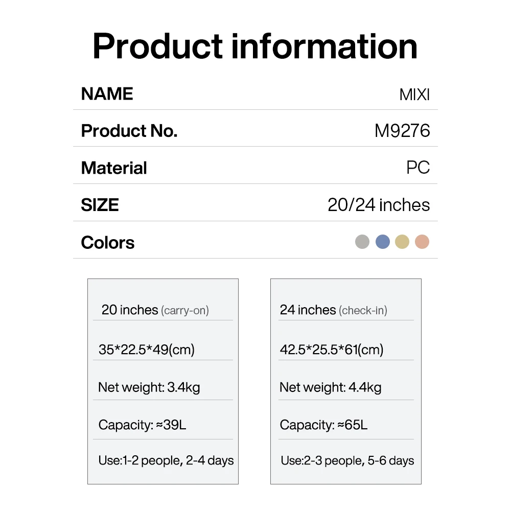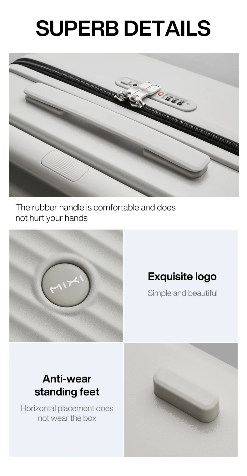 Constructed from premium ABS material, this suitcase is built to withstand the demands of frequent travel. The patent design not only enhances its aesthetic appeal but also contributes to its resilience. To maintain its pristine condition, simply wipe clean with a damp cloth. Available to ship from Saudi Arabia and CHINA, your Mixi Gorgeous suitcase is ready to accompany you on your next adventure, promising a blend of fashion-forward design and enduring functionality. Invest in luggage that reflects your taste and simplifies your travels.