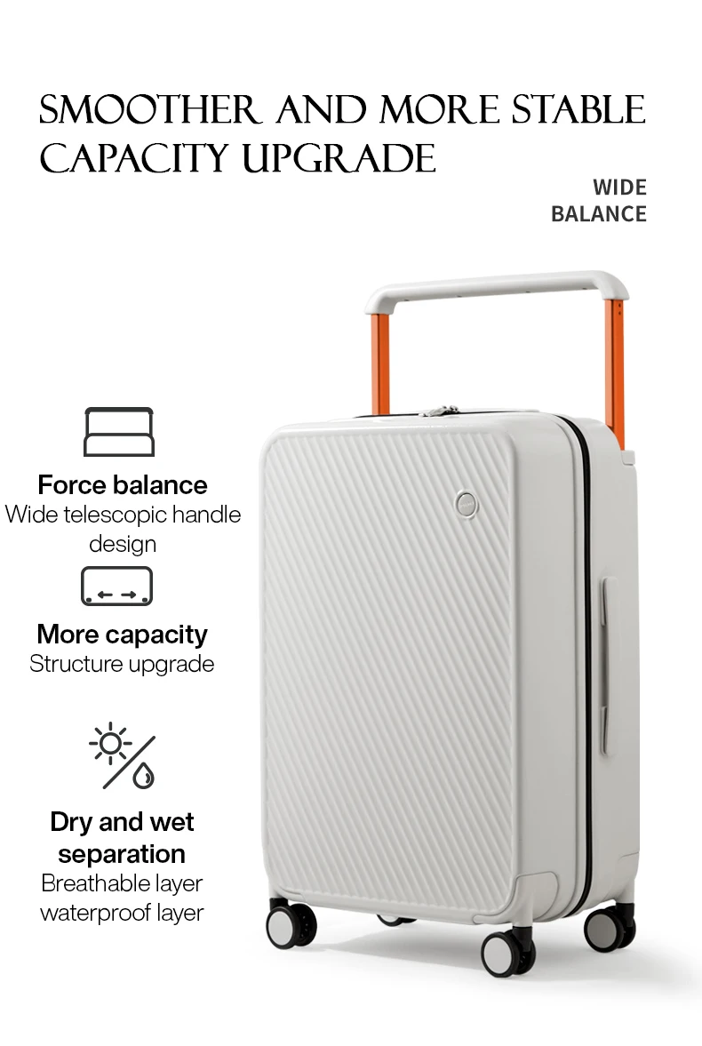 Introducing the Mixi Gorgeous Wide Handle Suitcase, a testament to sophisticated design and unparalleled travel convenience. Whether you're embarking on a weekend getaway or a globe-trotting adventure, this hardside luggage is engineered to make every journey effortless and undeniably chic. Designed for both discerning women and men, its patent-inspired aesthetic ensures you'll turn heads at every destination.