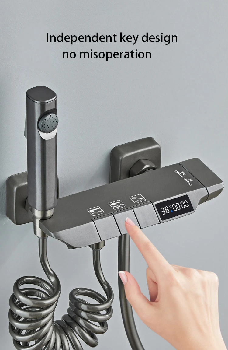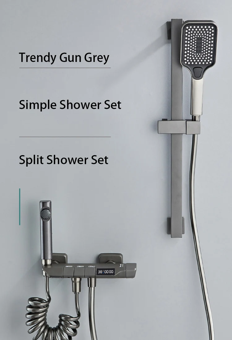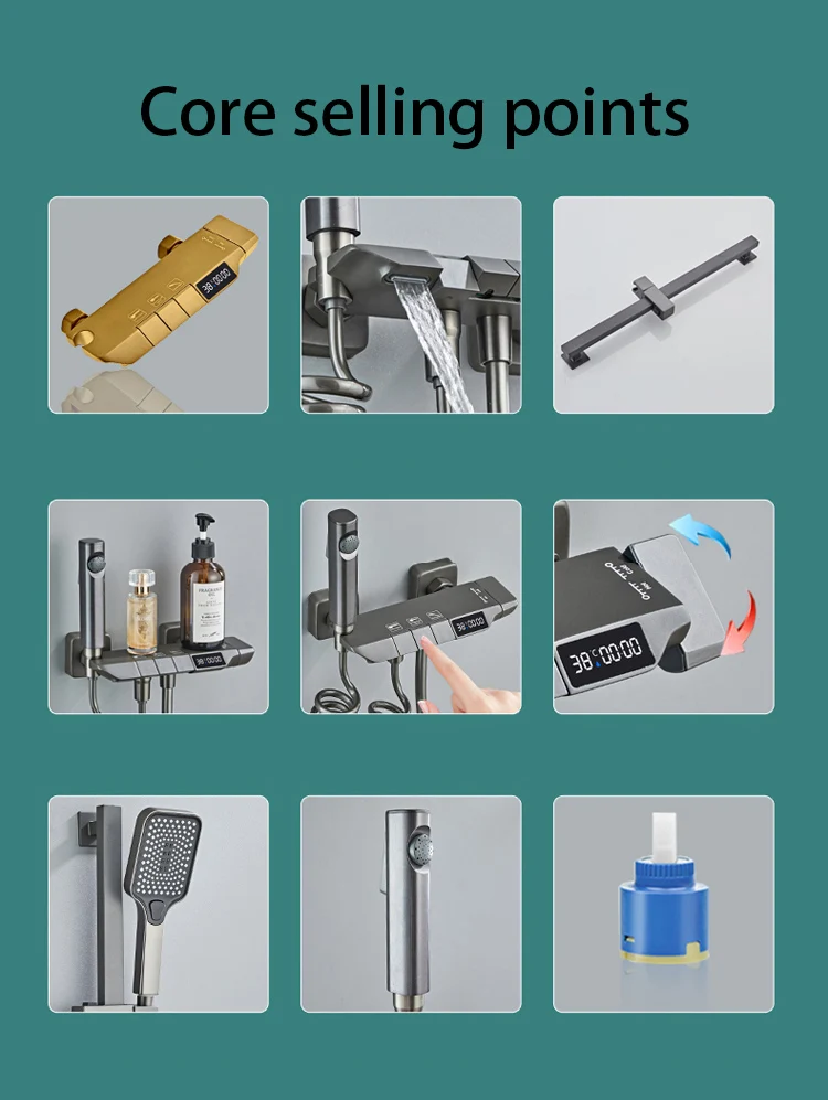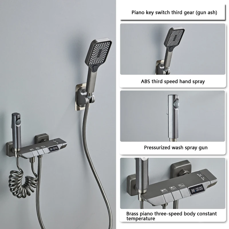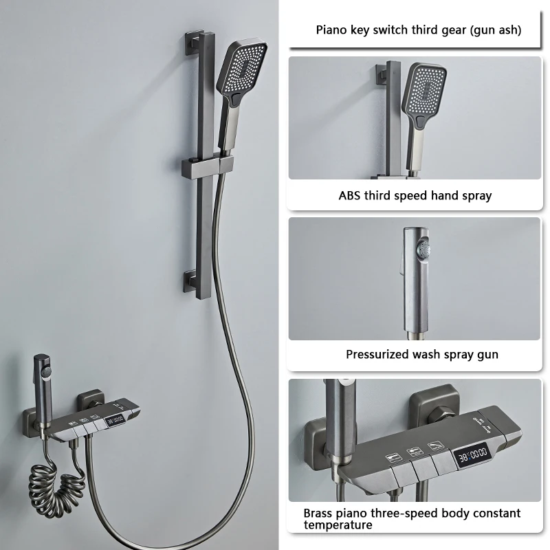 Be the first to review “Modern Shower System Full Set Grey 2 Way Piano Keys Bathroom Shower Set Wall Mounted Brass Bathtub Digital Display Shower Faucet”