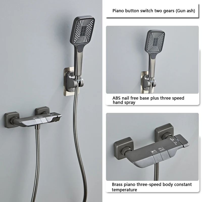 Modern Shower System Full Set Grey 2 Way Piano Keys Bathroom Shower Set Wall Mounted Brass Bathtub Digital Display Shower Faucet