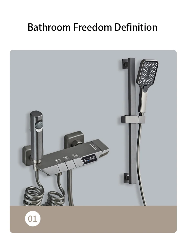 Crafted from high-grade brass, this shower system is built to last, resisting rust and tarnishing for years of reliable performance. The wall-mounted installation not only enhances the modern aesthetic of your bathroom but also frees up valuable floor space. Available in a range of configurations and attractive colors, including a stunning grey option, this set allows you to personalize your bathroom to perfection. The optional LED illuminated rods add a touch of futuristic luxury, creating a serene and inviting atmosphere. Enjoy a consistently comfortable and controlled water experience, making every moment in your bathroom a pleasure.