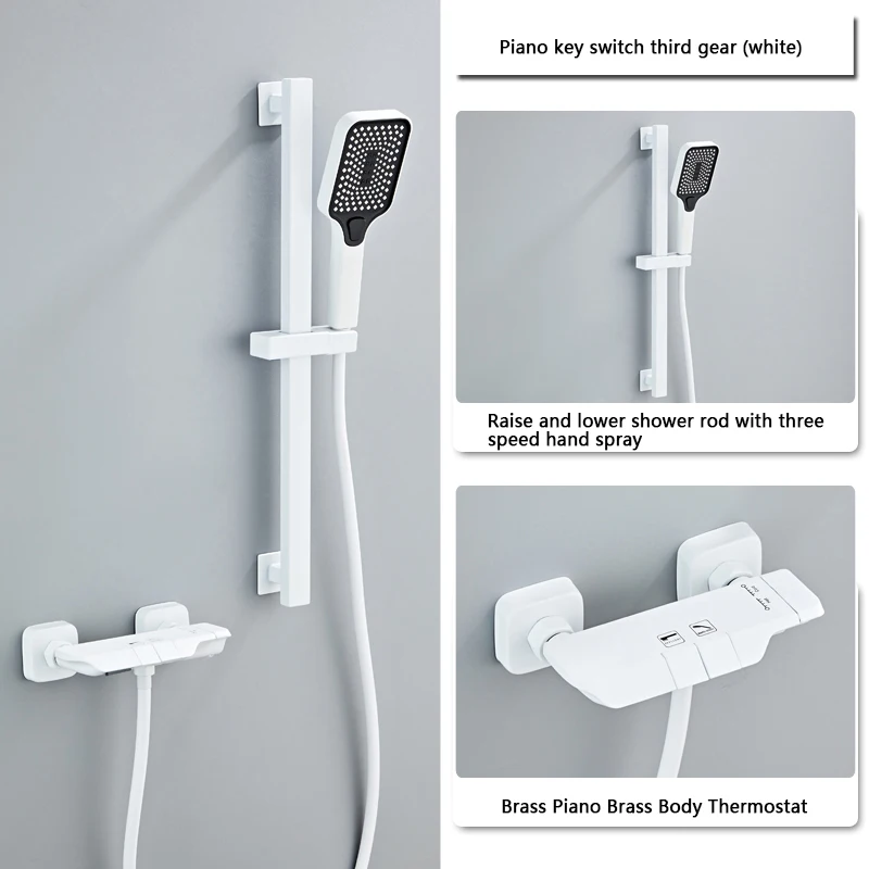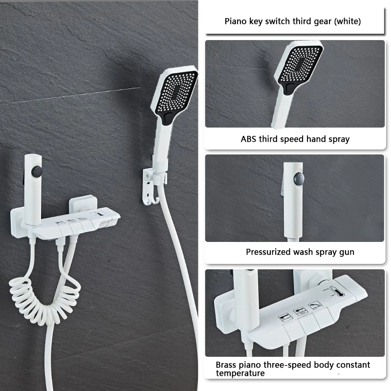 Elevate your bathroom with our Modern Shower System. Featuring 2 or 3-way control, piano keys, and a digital display, this wall-mounted brass set offers a luxurious bathing experience. Available in sleek grey and white options. Upgrade your shower today!