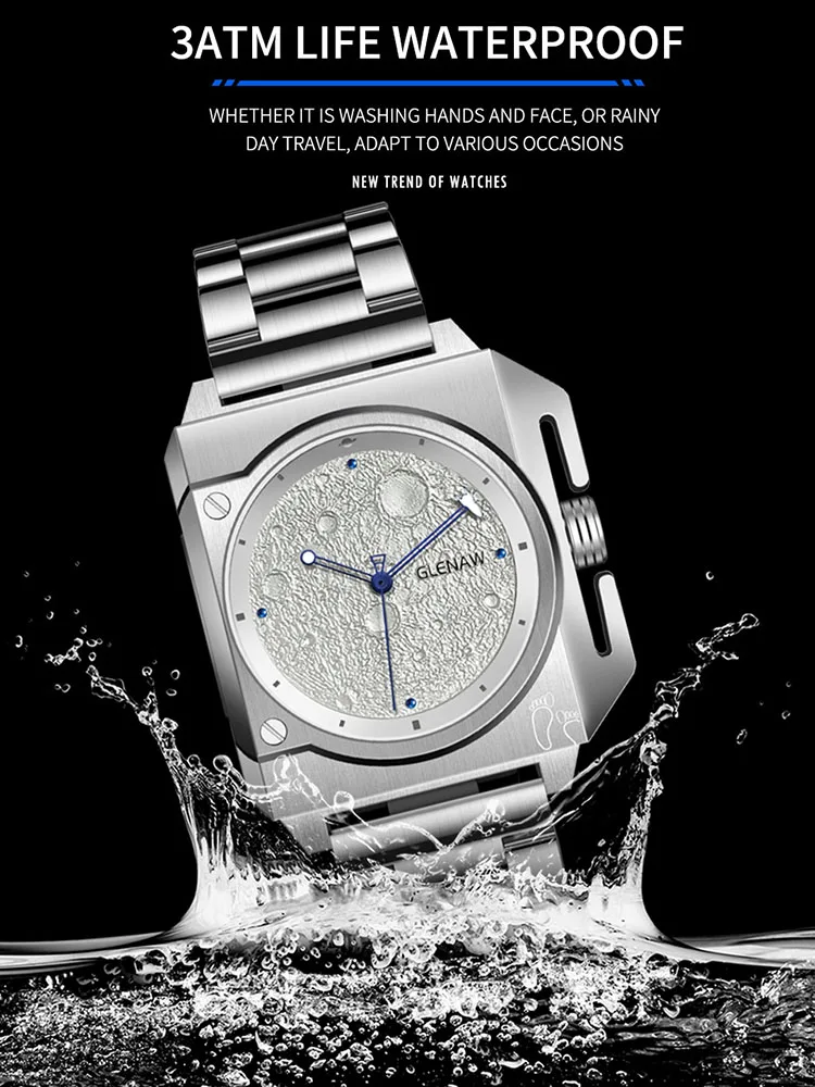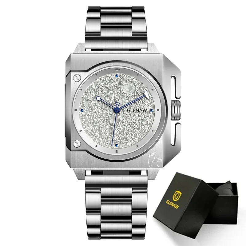 Care for your GLENAW watch by avoiding prolonged exposure to extreme temperatures and strong magnetic fields. Clean the stainless steel case and bracelet with a soft, dry cloth. This exquisite mechanical watch is a perfect gift for yourself or the influential man in your life, offering a timeless fusion of style, functionality, and celestial inspiration.