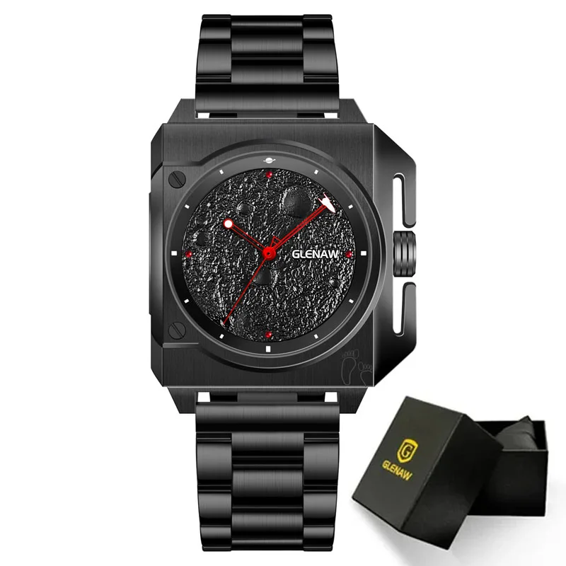 The GLENAW Mechanical Watch is designed to capture attention and spark conversation. Its meticulously engineered movement ensures reliable timekeeping, while the unique moon dial and luminous spaceship pointer add a touch of cosmic wonder to your wrist. This watch is for the man who appreciates precision, values craftsmanship, and embraces a touch of imaginative flair.