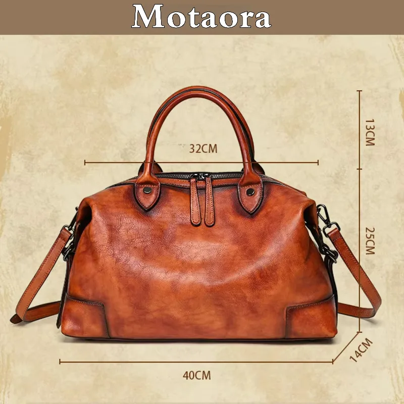h1 MOTAORA Leather Handbag for Women Vintage Boston Style Soft Cowhide Large Capacity Travel Shoulder Bag