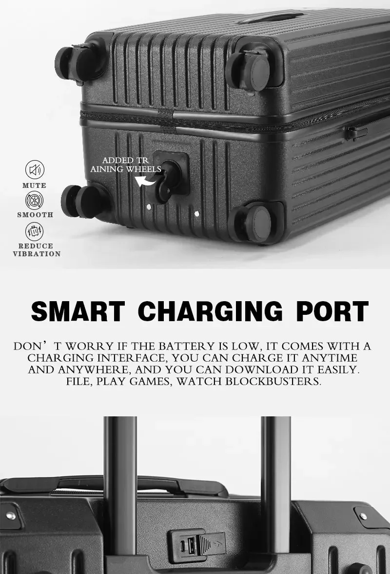 Experience the future of travel with our Multifunction Spinner Luggage. Designed for the modern globetrotter, this suitcase seamlessly blends robust protection with intelligent features, ensuring your journeys are as smooth as they are stylish. Forget the days of dead batteries and spilled drinks; this luggage is engineered to anticipate and cater to your every need while you navigate bustling terminals and explore new horizons.